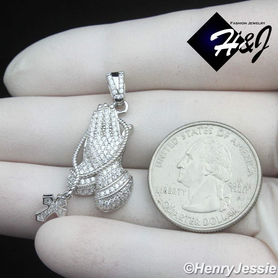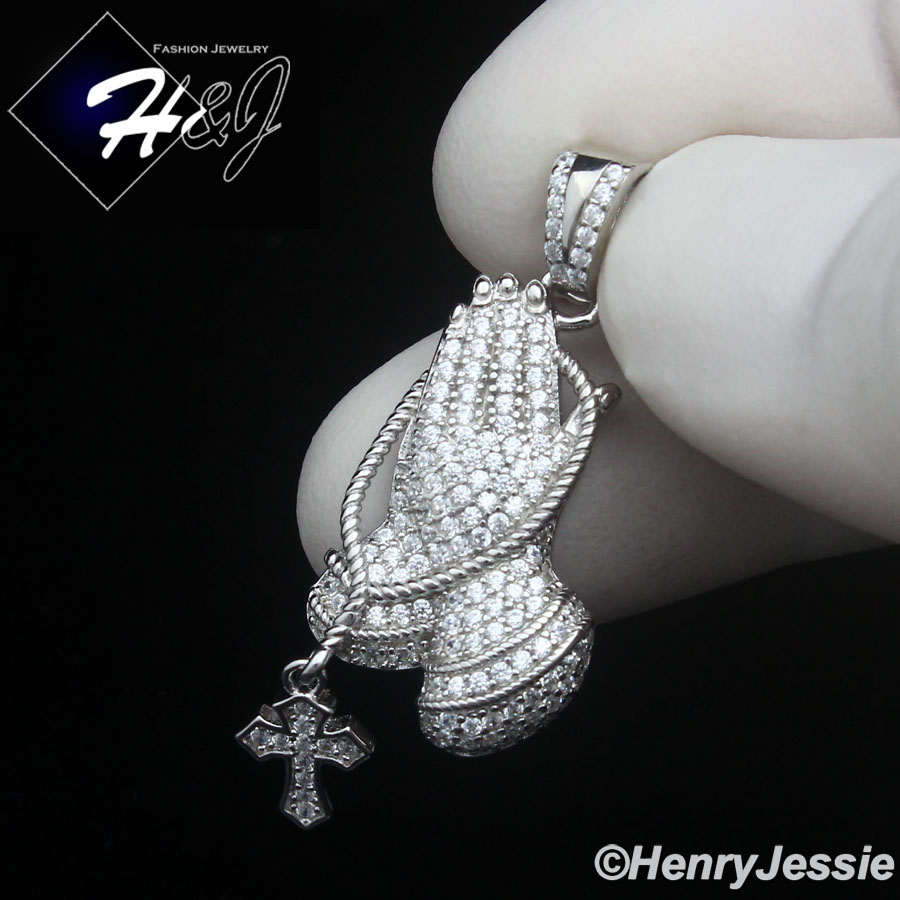 > Sterling Silver > Men > Pendants > MEN WOMEN SOLID 925 STERLING SILVER ICY CZ 3D CROSS PRAYING HANDS PENDANT*SP501