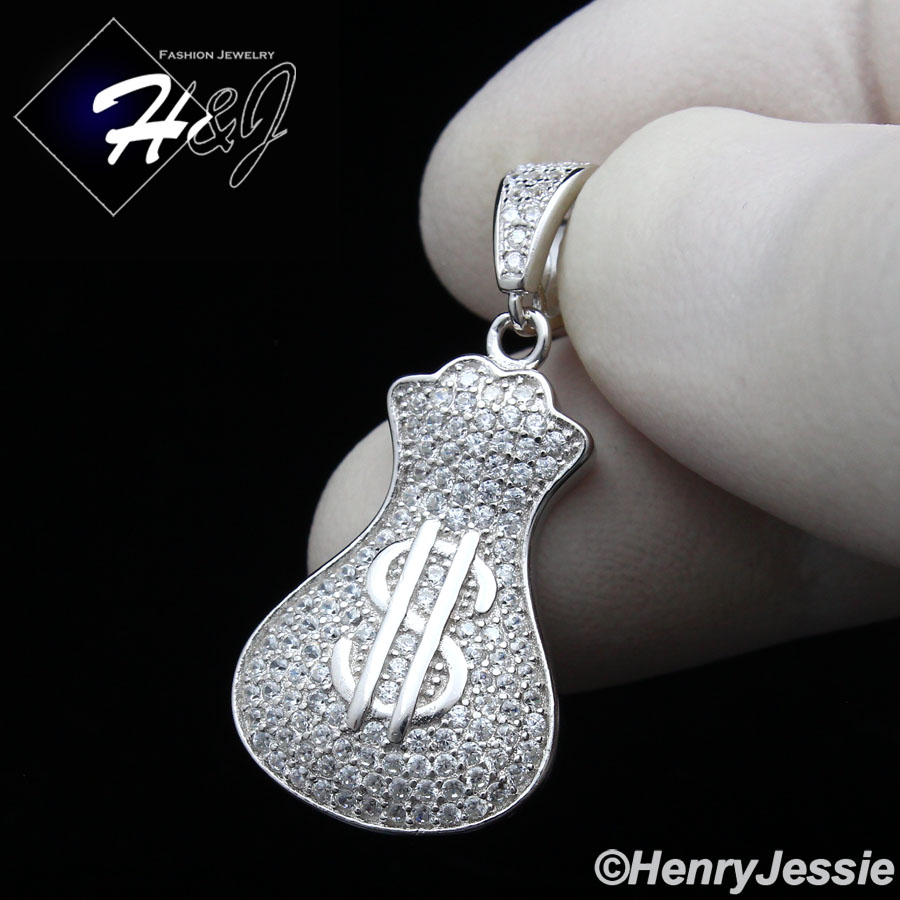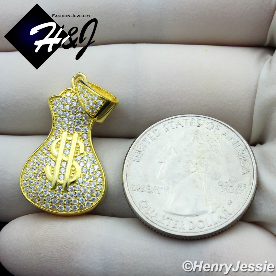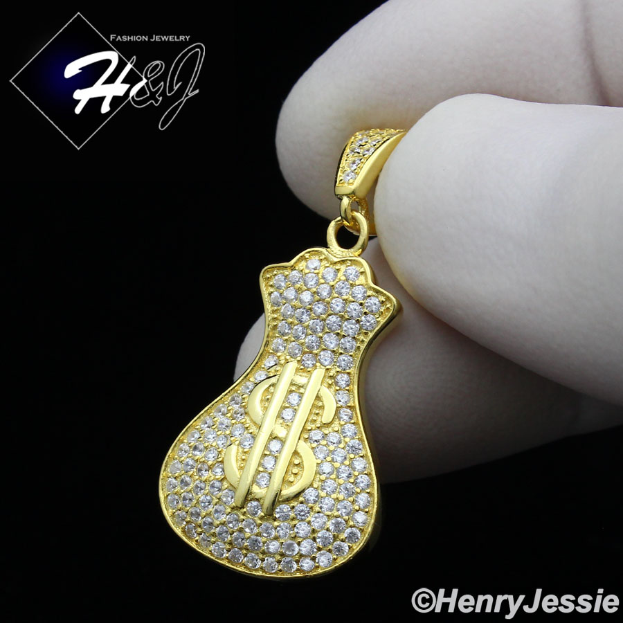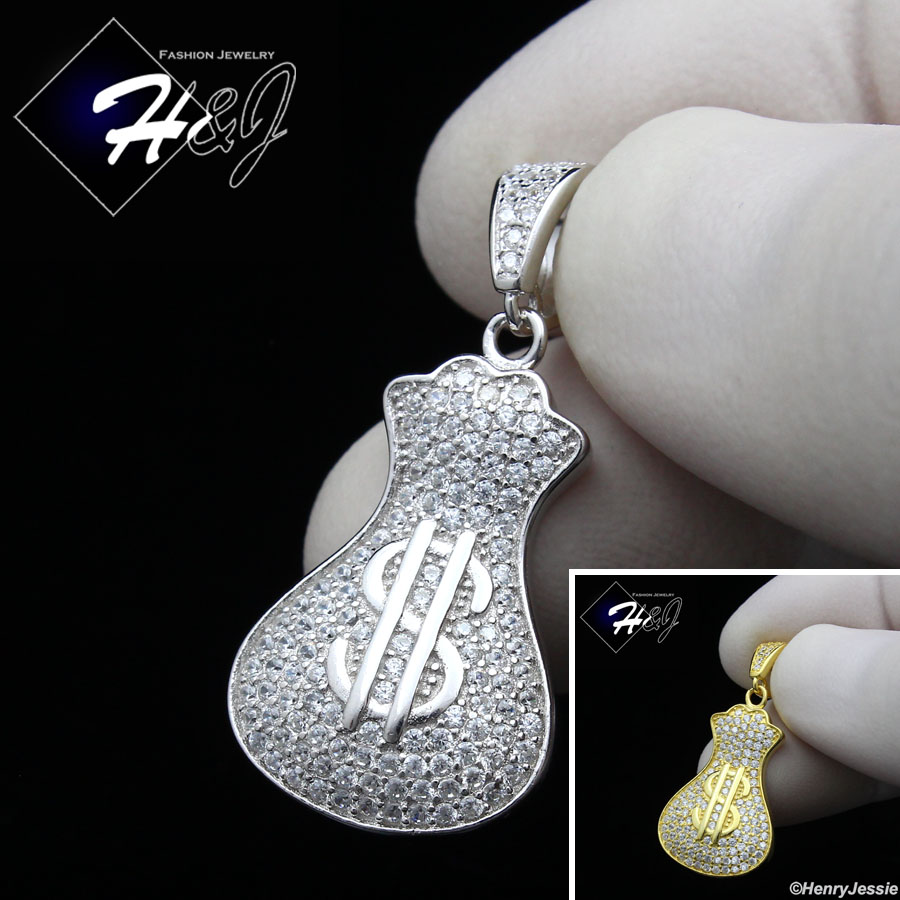 > Sterling Silver > Men > Pendants > 925 STERLING SILVER ICY BLING CZ GOLD PLATED/SILVER 3D MONEY BAG PENDANT*SP250