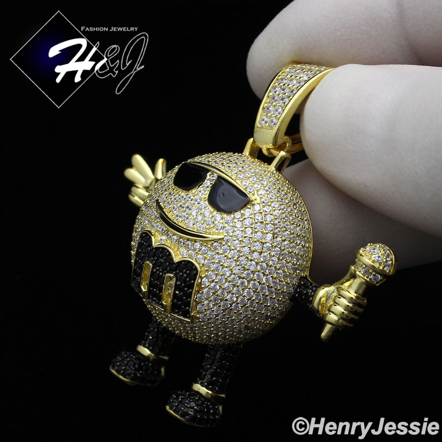 > Sterling Silver > Men > Pendants > 925 STERLING SILVER ICY BLING CZ GOLD PLATED 3D MM CANDY DISPENSER PENDANT*GP248