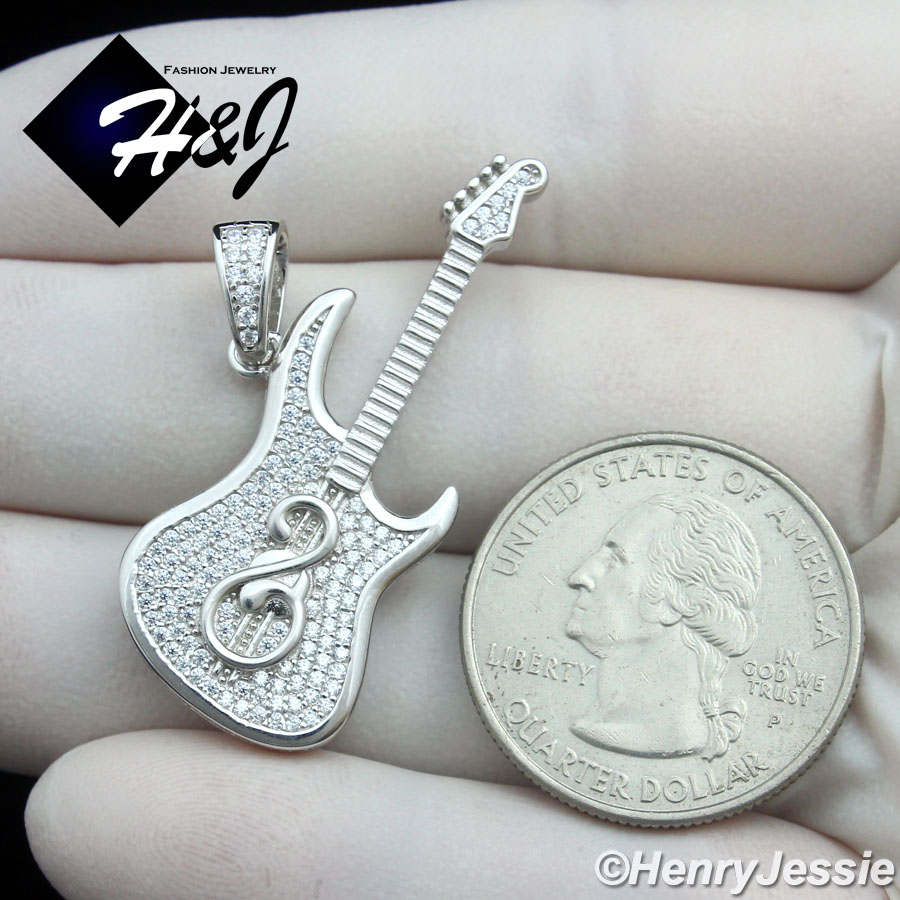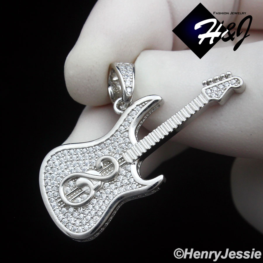 > Sterling Silver > Men > Pendants > MEN WOMEN 925 STERLING SILVER ICY CZ GOLD PLATED/SILVER 3D GUITAR PENDANT*SP459