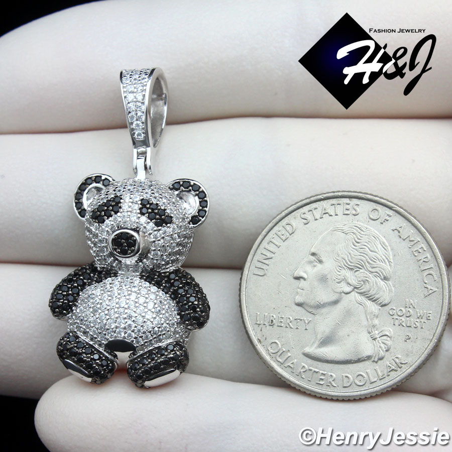 > Sterling Silver > Men > Pendants > MEN WOMEN SOLID 925 STERLING SILVER ICY CZ 3D SILVER/BLACK PANDA PENDANT*SP460