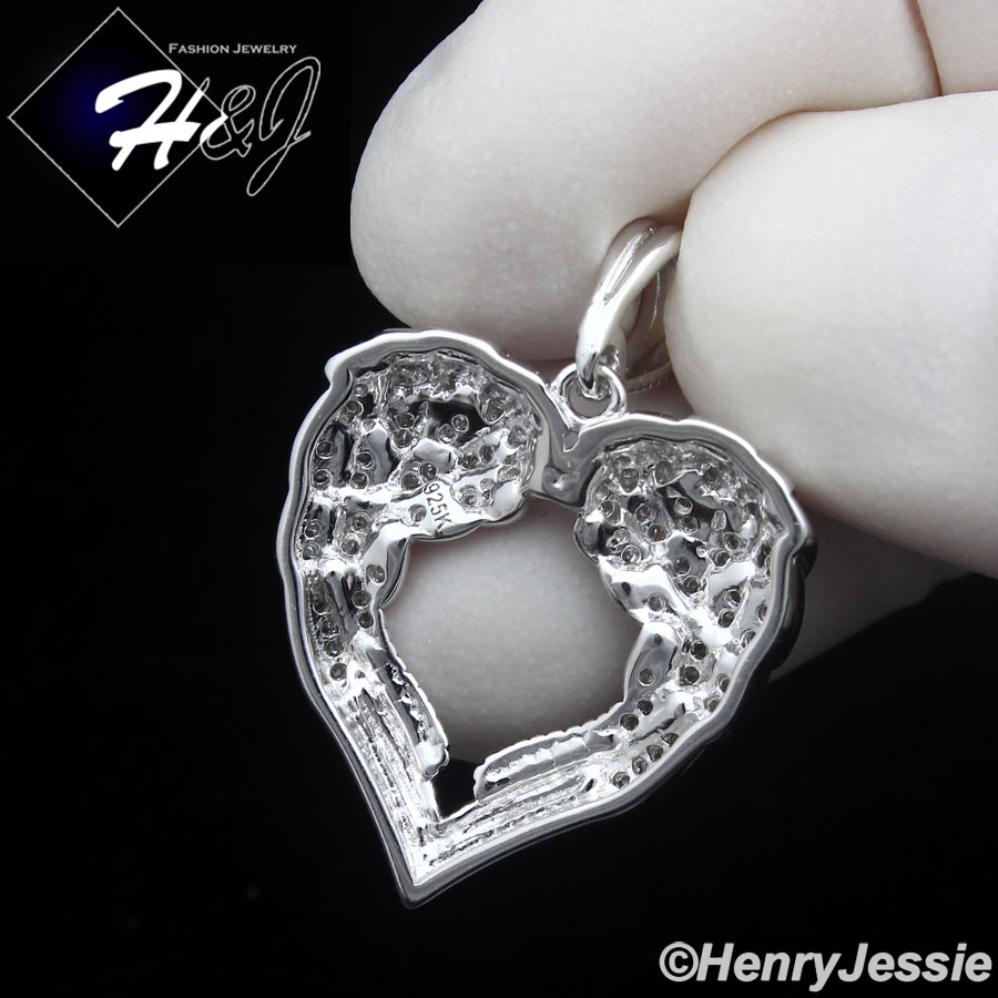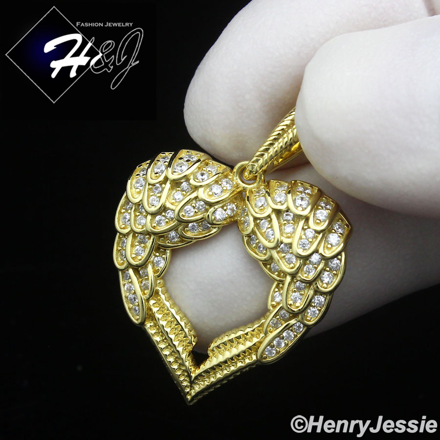 > Sterling Silver > Men > Pendants > 925 STERLING SILVER ICY CZ GOLD PLATED/SILVER 3D ANGEL WING HEART PENDANT*SP461