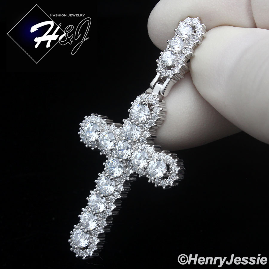> Sterling Silver > Men > Pendants > MEN WOMEN 925 STERLING SILVER ICY CZ GOLD PLATED/SILVER LAYER CROSS PENDANT*P462