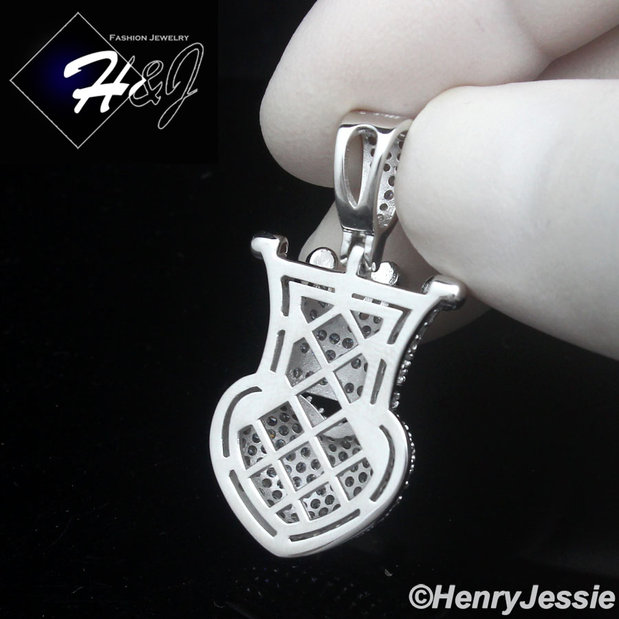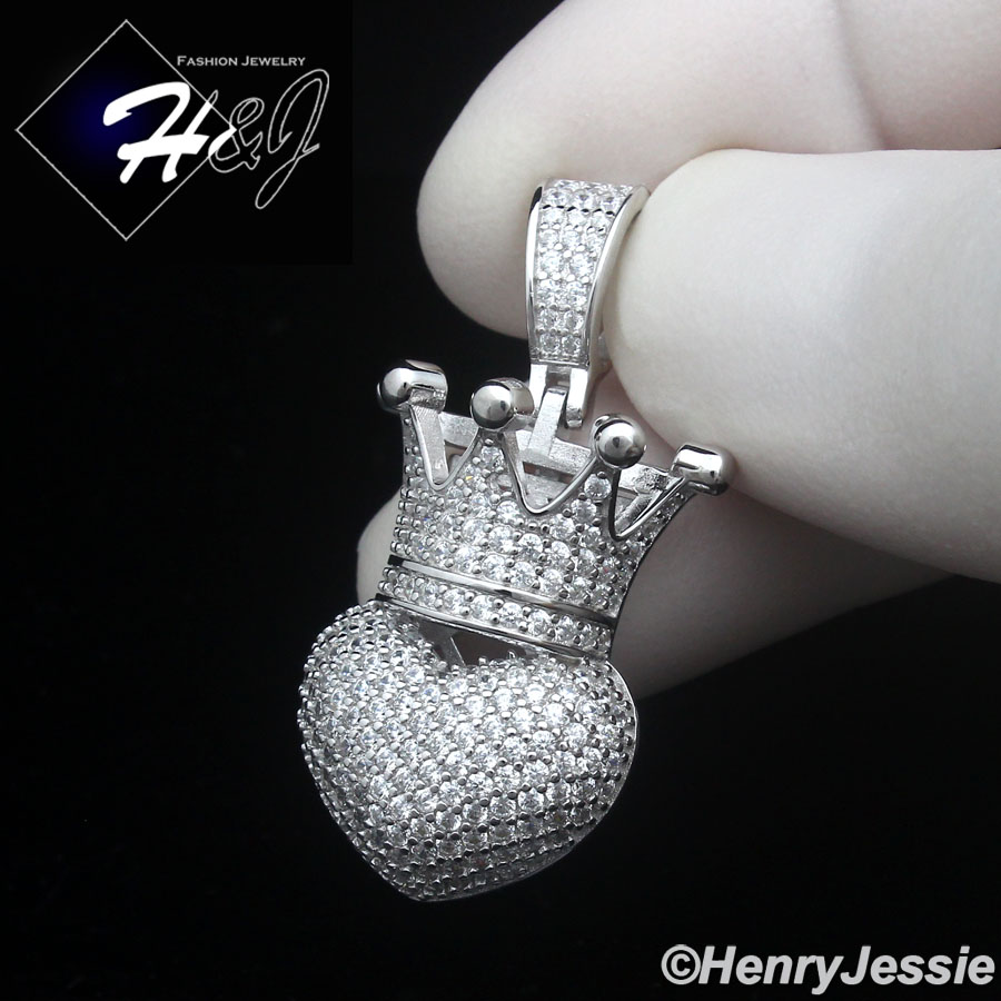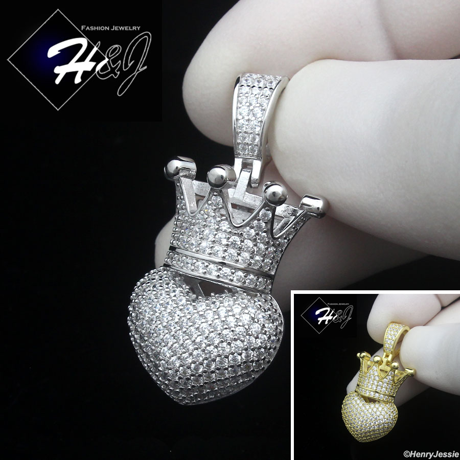 > Sterling Silver > Men > Pendants > 925 STERLING SILVER ICY BLING CZ GOLD PLATED/SILVER 3D HEART CROWN PENDANT*SP491