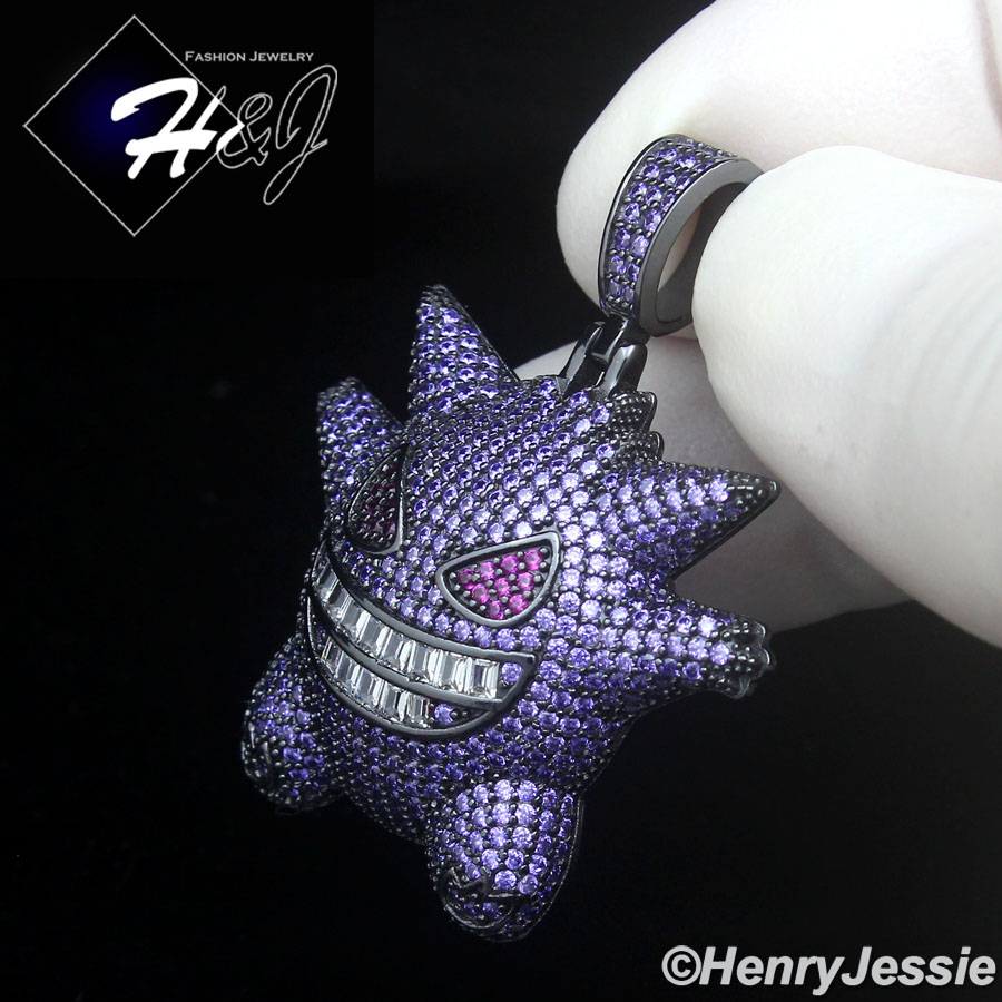 > Sterling Silver > Men > Pendants > MEN 925 STERLING SILVER ICY PURPLE CZ 3D BLACK PLATED HIPHOP CARTOON PENDANT*P504