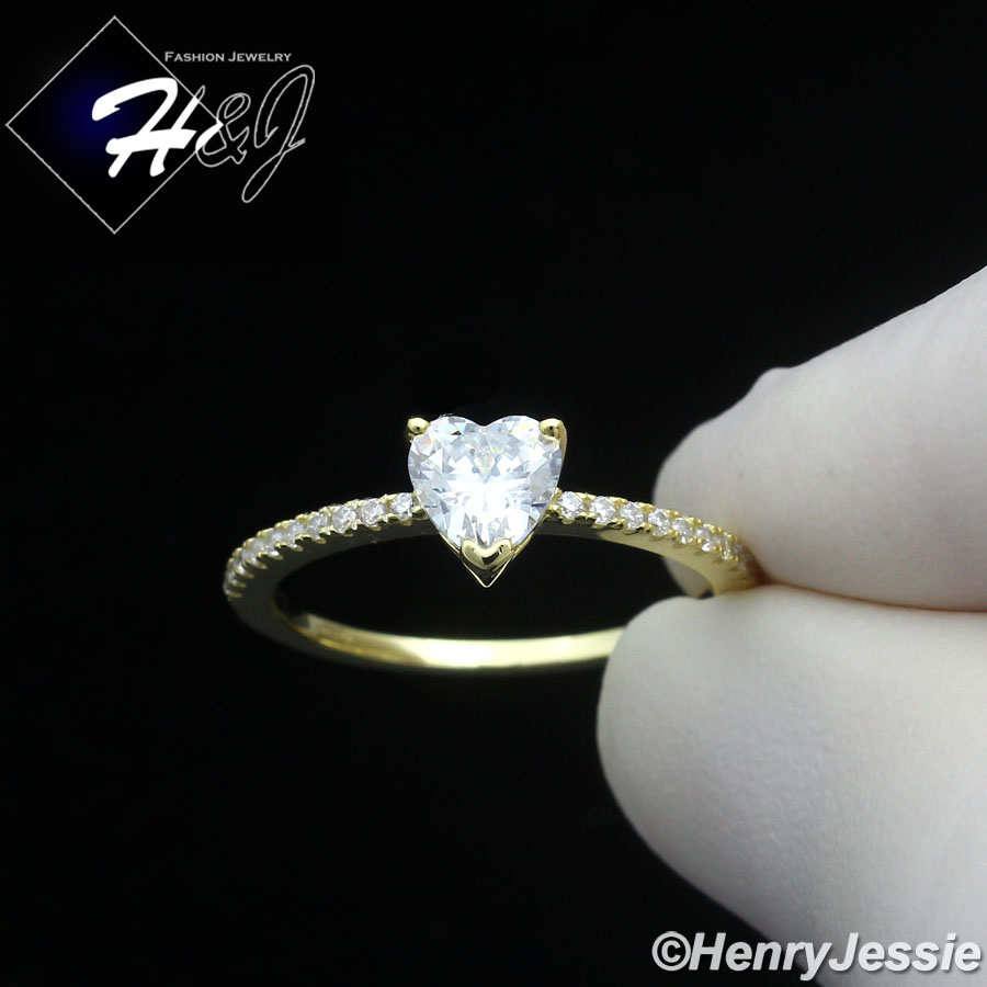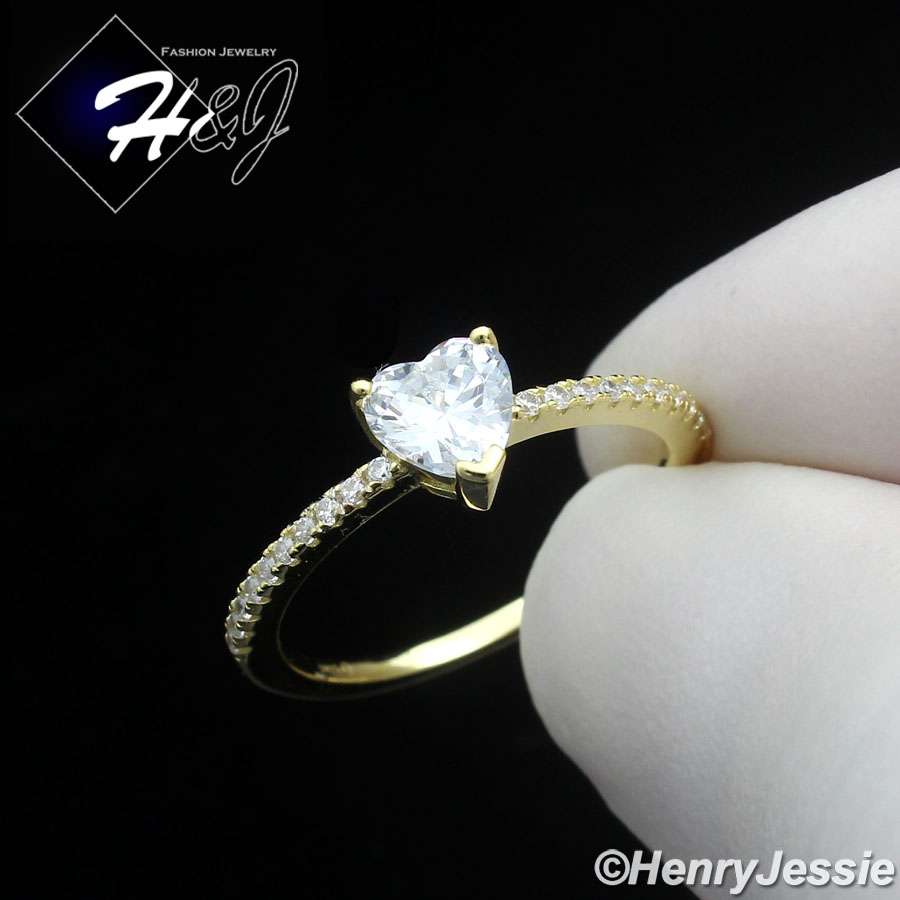 > Sterling Silver > Men > Rings > WOMEN 925 STERLING SILVER ICY CZ GOLD PLATED HEART SHAPE ENGAGEMENT RING*GR211