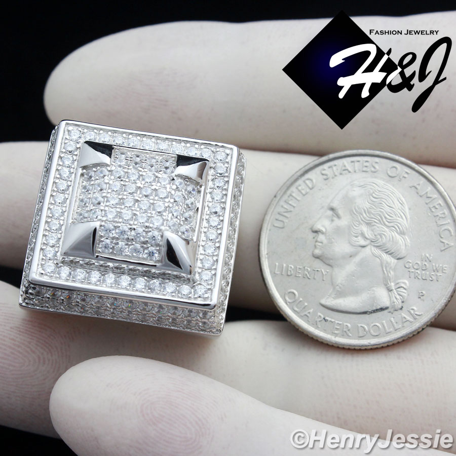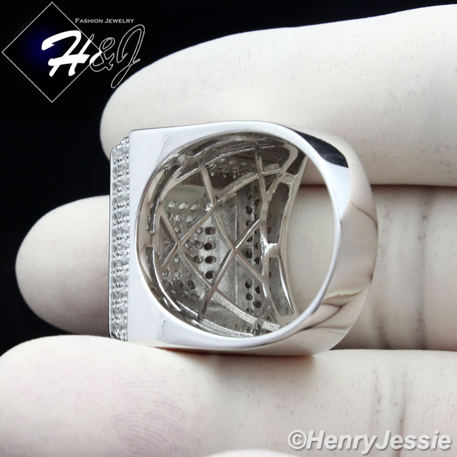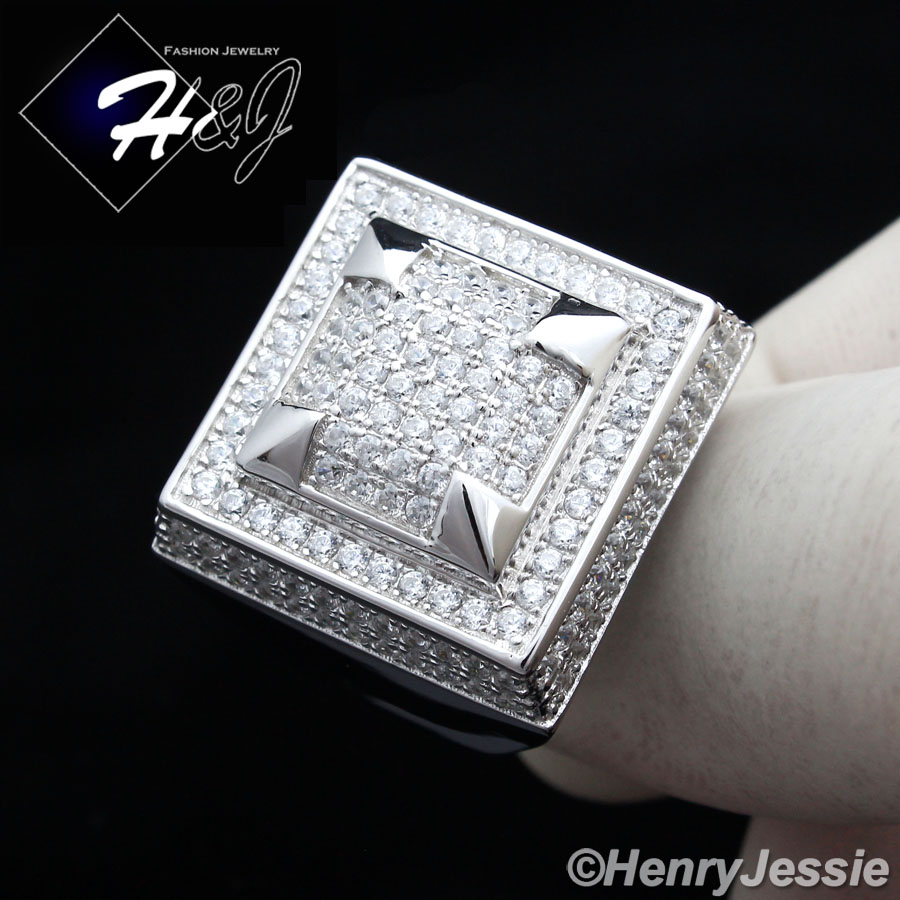 > Sterling Silver > Men > Rings > MEN 925 STERLING SILVER LAB DIAMOND SQUARE ICED BLING RING*SR33