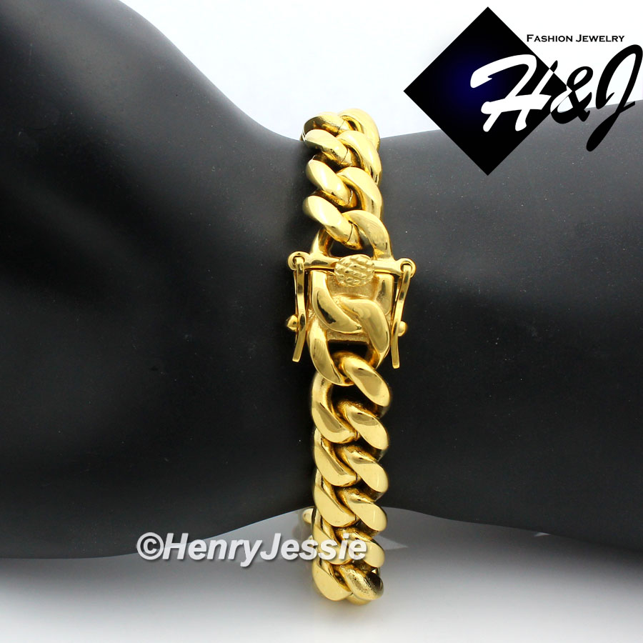 > Stainless Steel > Men > Bracelets > 8.5"MEN Stainless Steel 12x5mm Gold Miami Cuban Curb Link Chain Bracelet*GB154