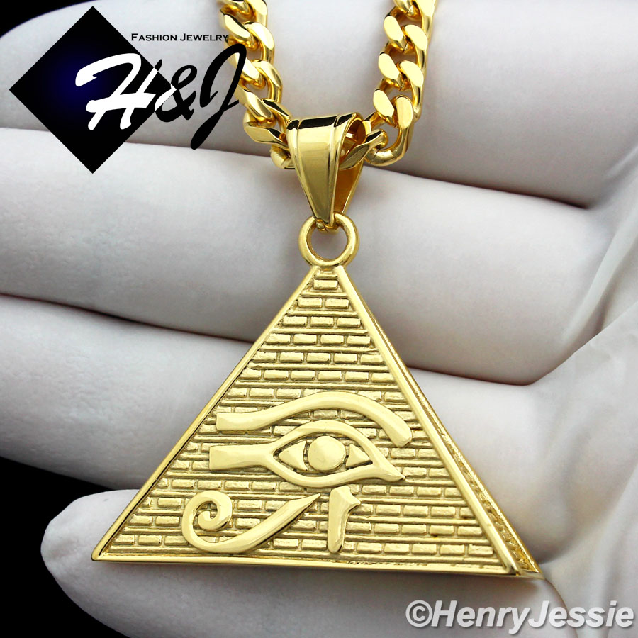 > Stainless Steel > Men > Necklace Pendant SETS > 18"-36"MEN Stainless Steel 5mm Gold Cuban Curb Link Chain Necklace Eye of Horus Pendant*GP89
