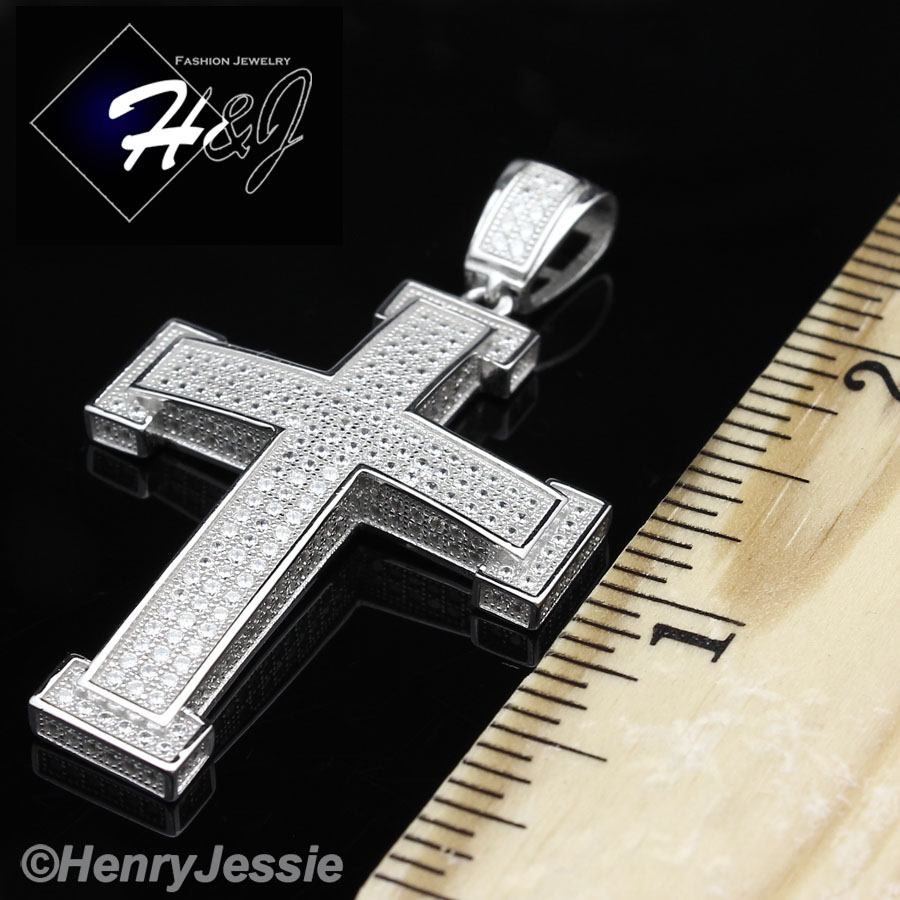 > Sterling Silver > Men > Pendants > MEN 925 STERLING SILVER LAB DIAMOND ICED OUT BLING 3D CROSS CHARM PENDANT*SP26