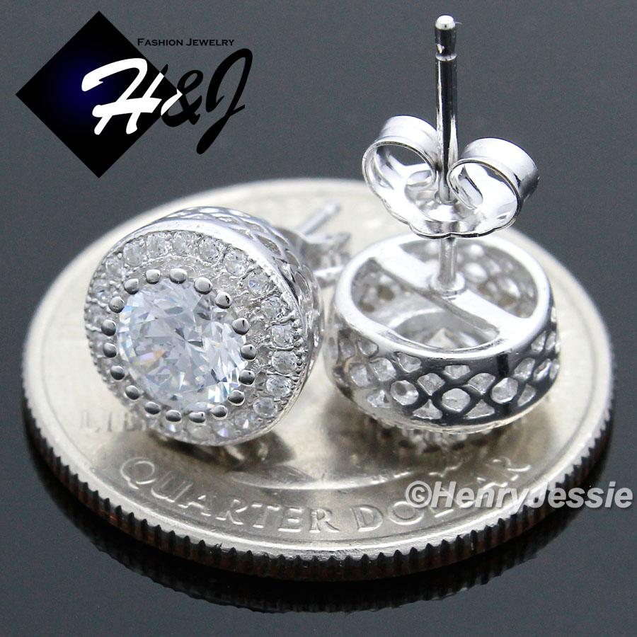 > Sterling Silver > Men > Earrings > MEN WOMEN 925 STERLING SILVER 9MM LAB DIAMOND ICED BLING ROUND STUD EARRING*E80