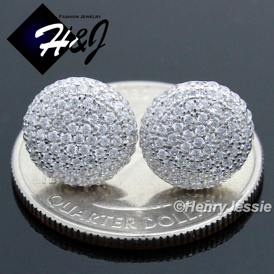 > Sterling Silver > Men > Earrings > MEN 925 STERLING SILVER 9MM LAB DIAMOND ICED ROUND SCREW BACK STUD EARRING*E81