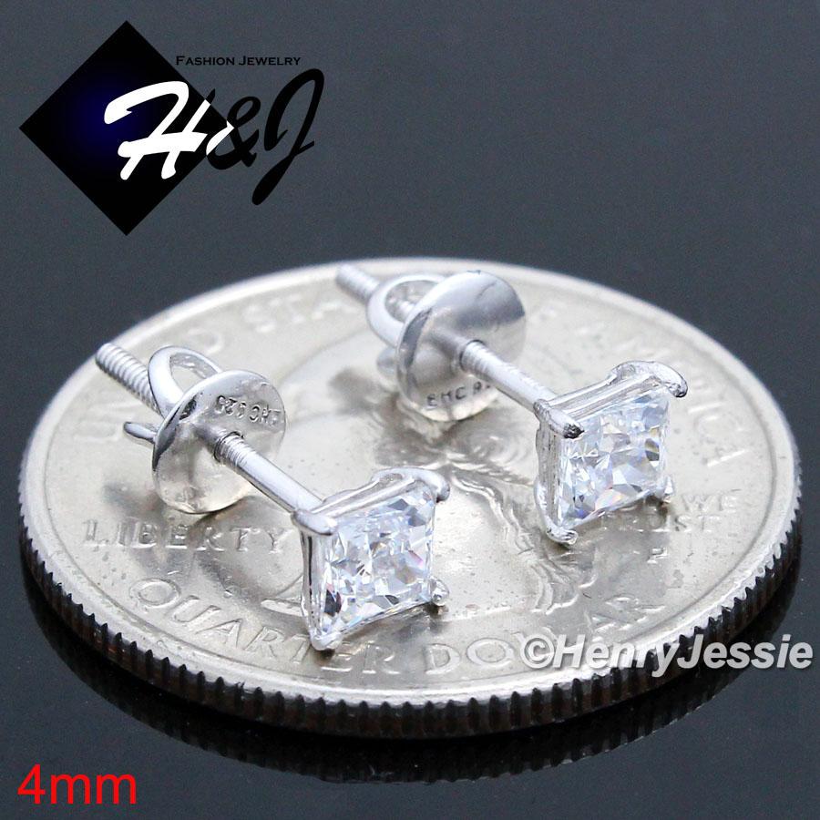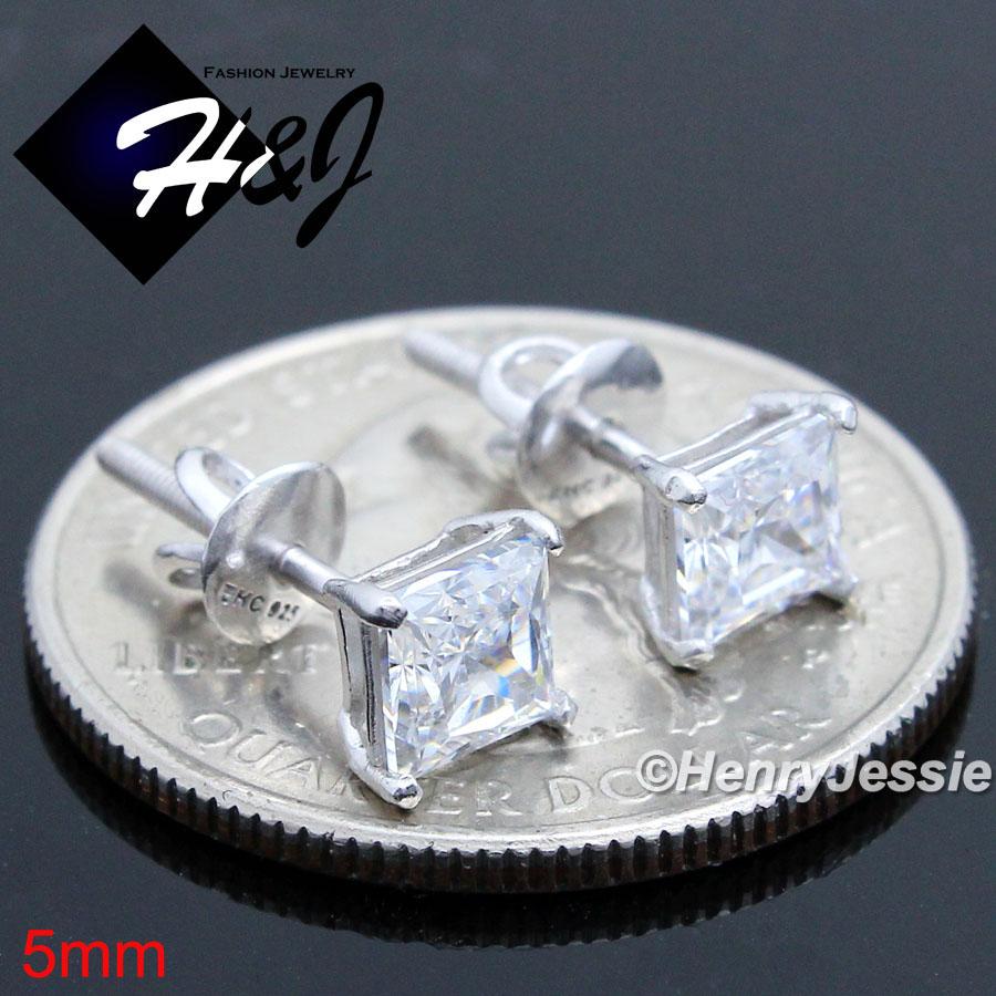 > Sterling Silver > Men > Earrings > 925 STERLING SILVER 4/5/6/7/8MM SQUARE CLEAR CUT CZ SCREW BACK STUD EARRING*SE93