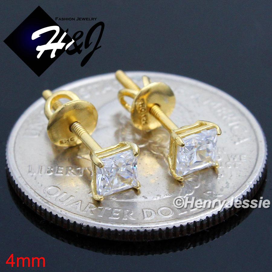 > Sterling Silver > Men > Earrings > 925 STERLING SILVER 4/5/6/7/8/9MM SQUARE CLEAR CZ GOLD SCREW BACK STUD EARRING*GE93