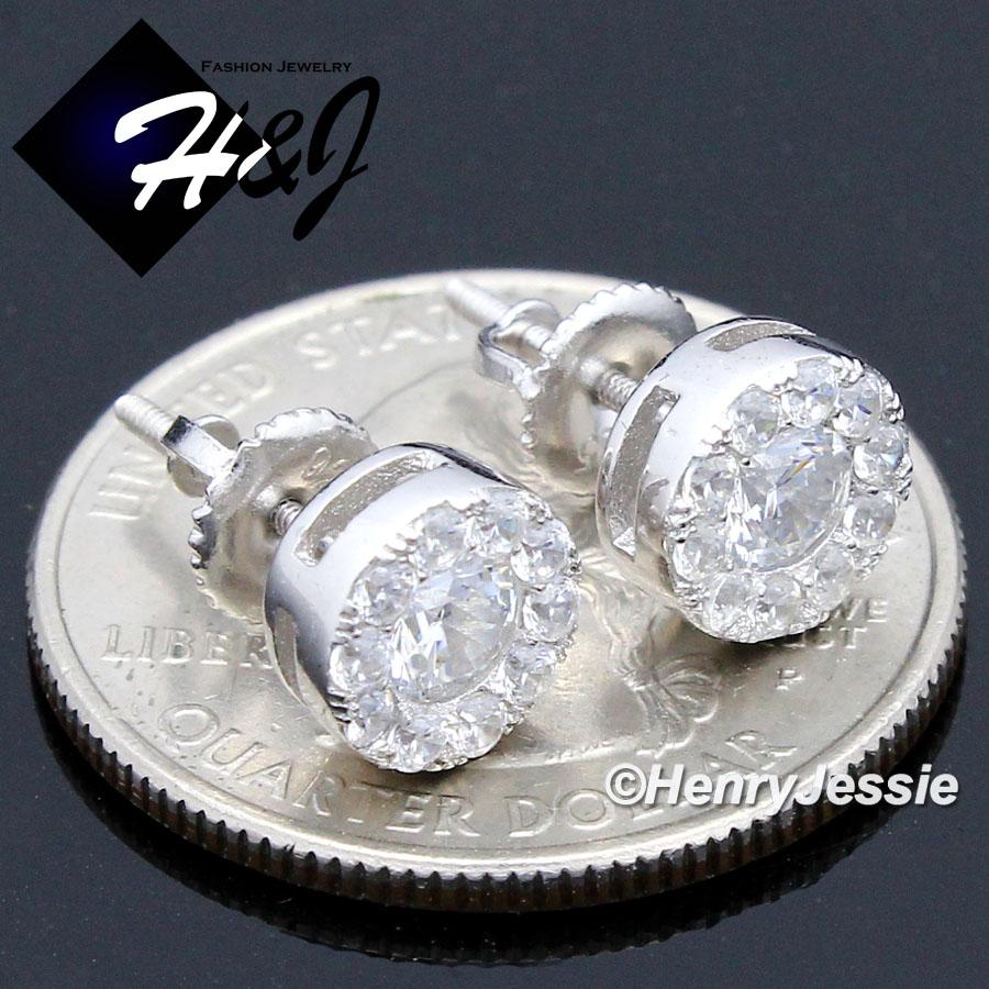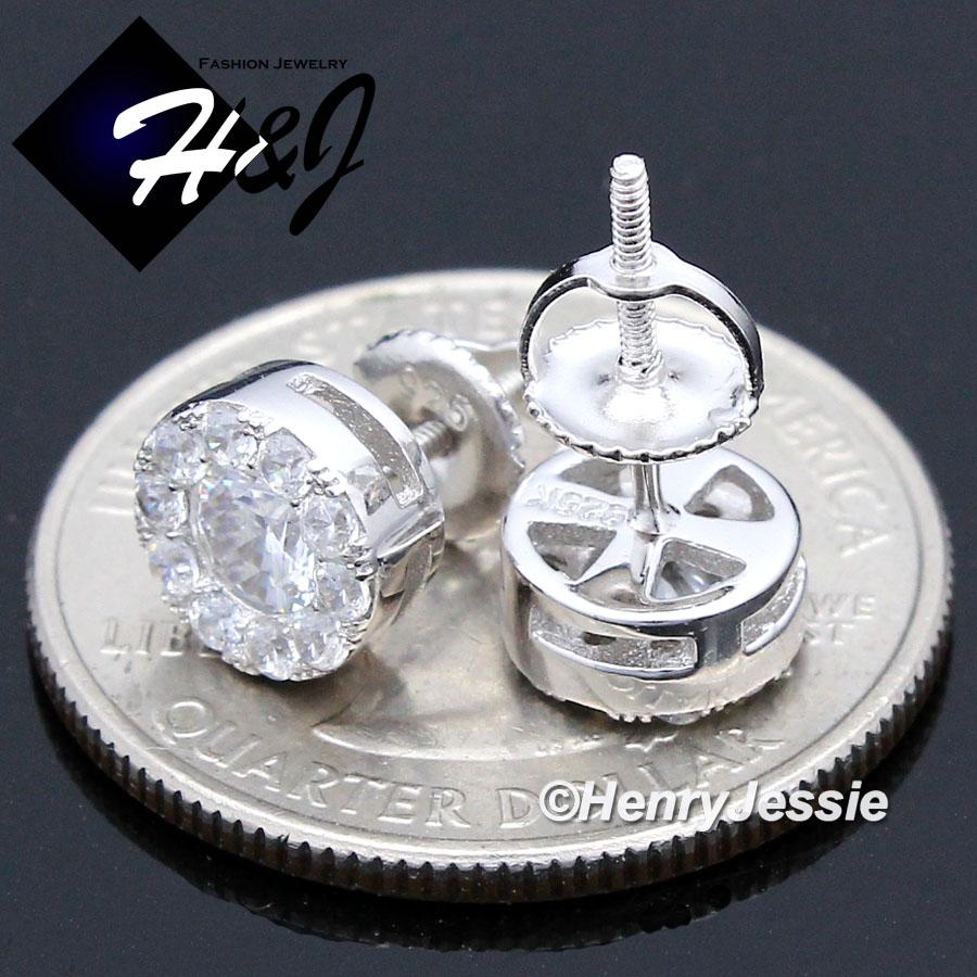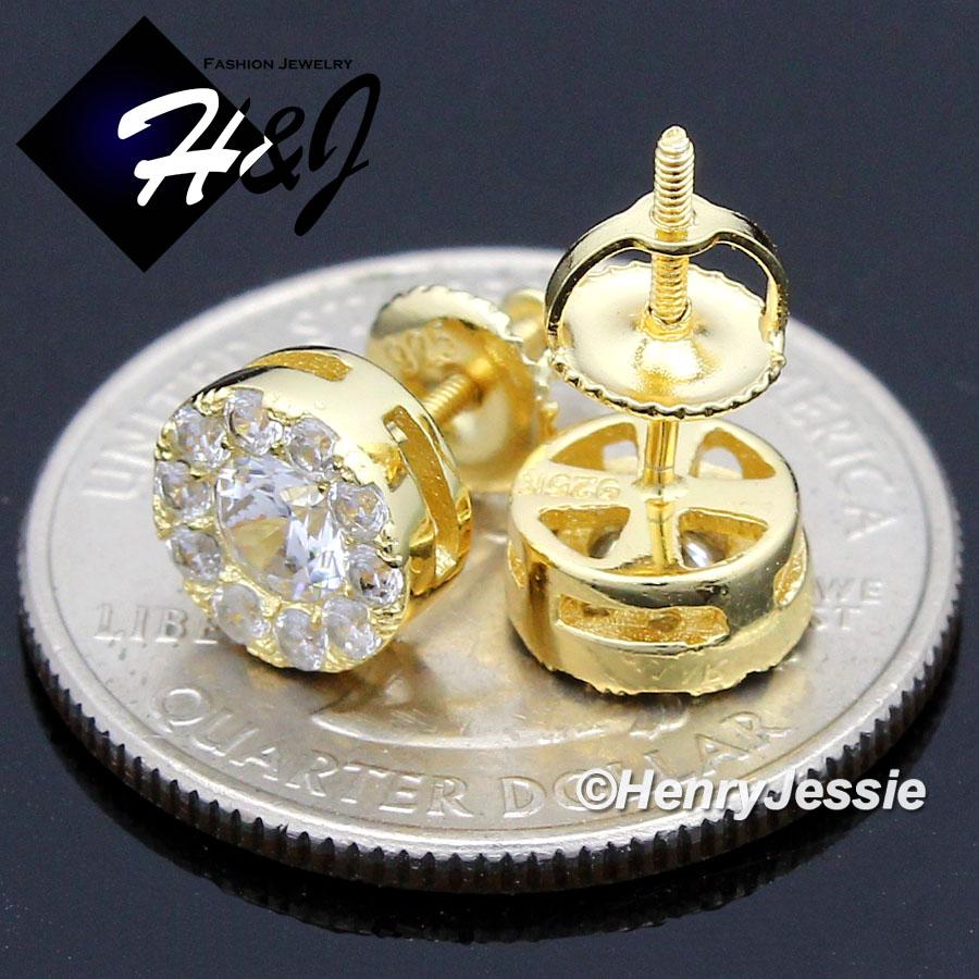 > Sterling Silver > Men > Earrings > MEN 925 STERLING SILVER 8MM ICED SILVER/GOLD ROUND SCREW BACK STUD EARRING*GE/SE143