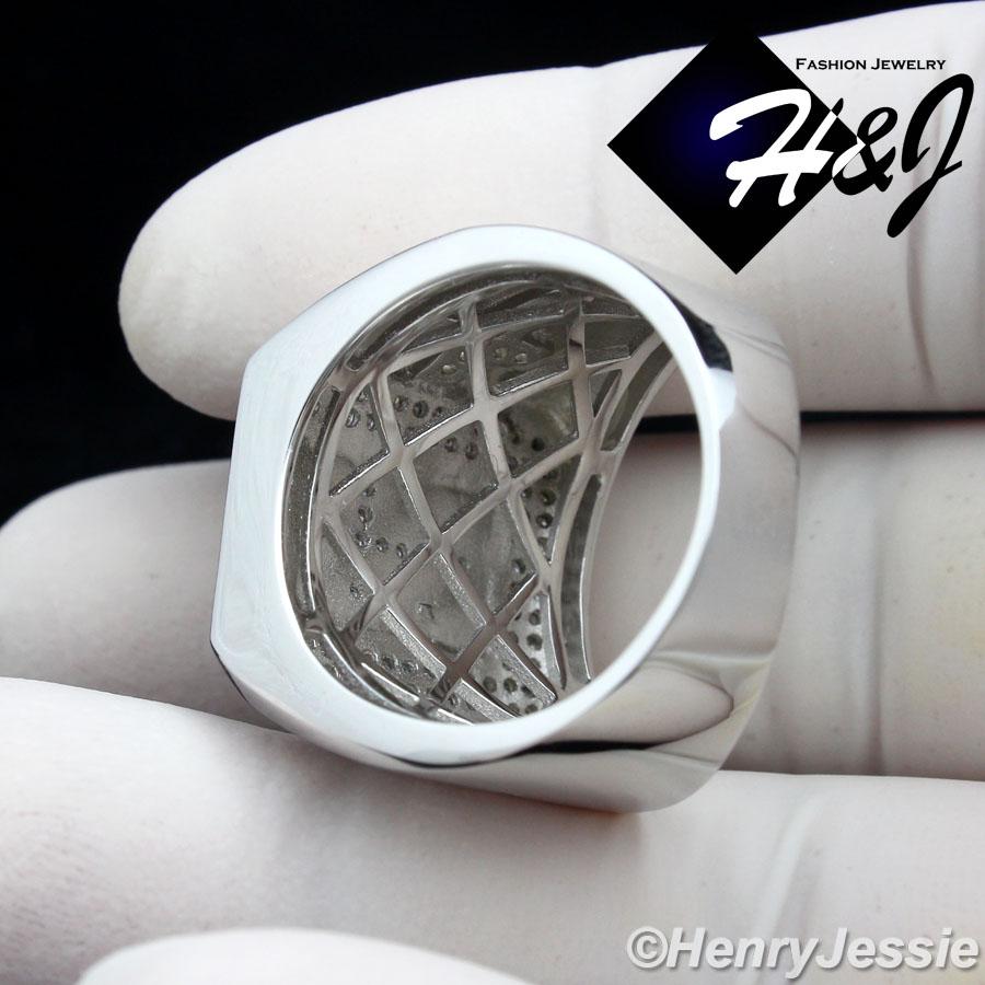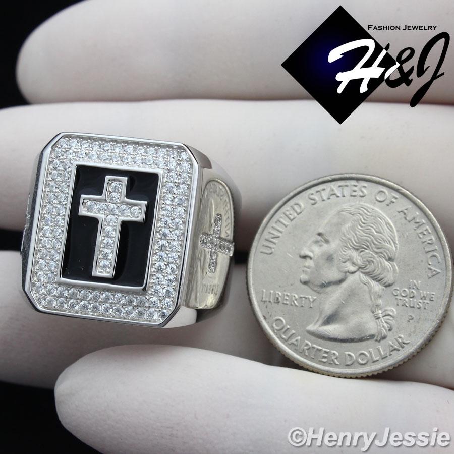 > Sterling Silver > Men > Rings > MEN 925 STERLING SILVER LAB DIAMOND ICED BLING BLACK/SILVER CROSS RING*SR58
