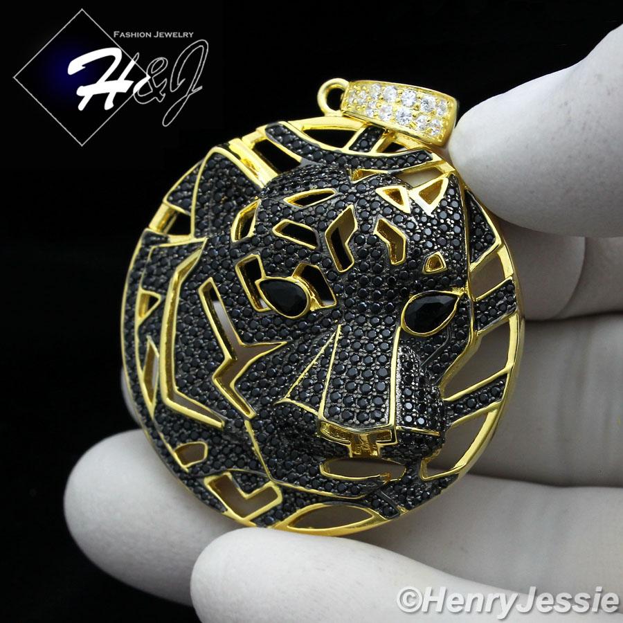 > Sterling Silver > Men > Pendants > MEN 925 STERLING SILVER LAB DIAMOND BLACK/GOLD ICED BLING TIGER HEAD PENDANT*GBP46