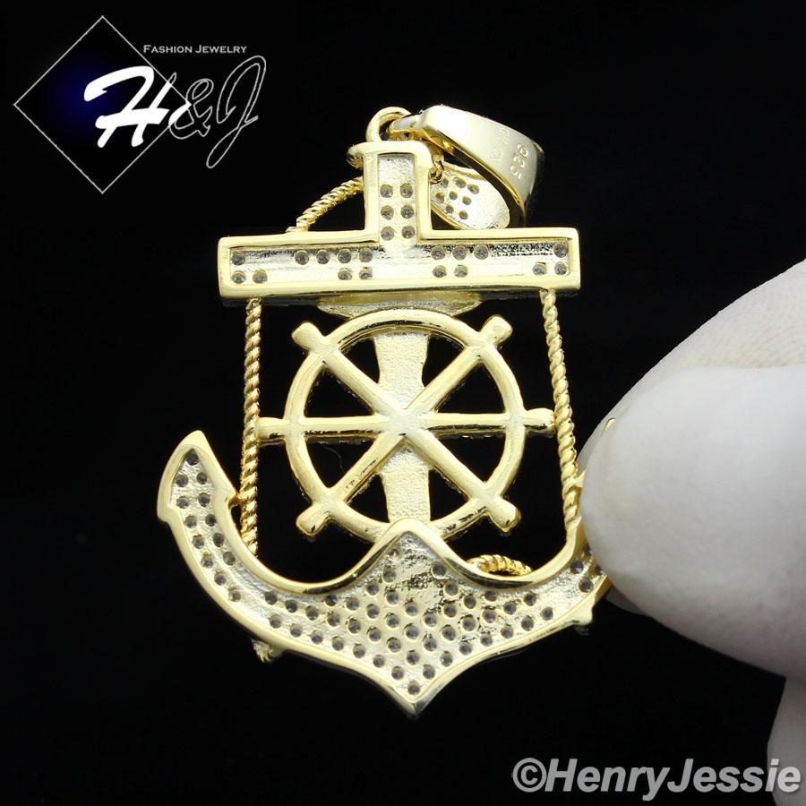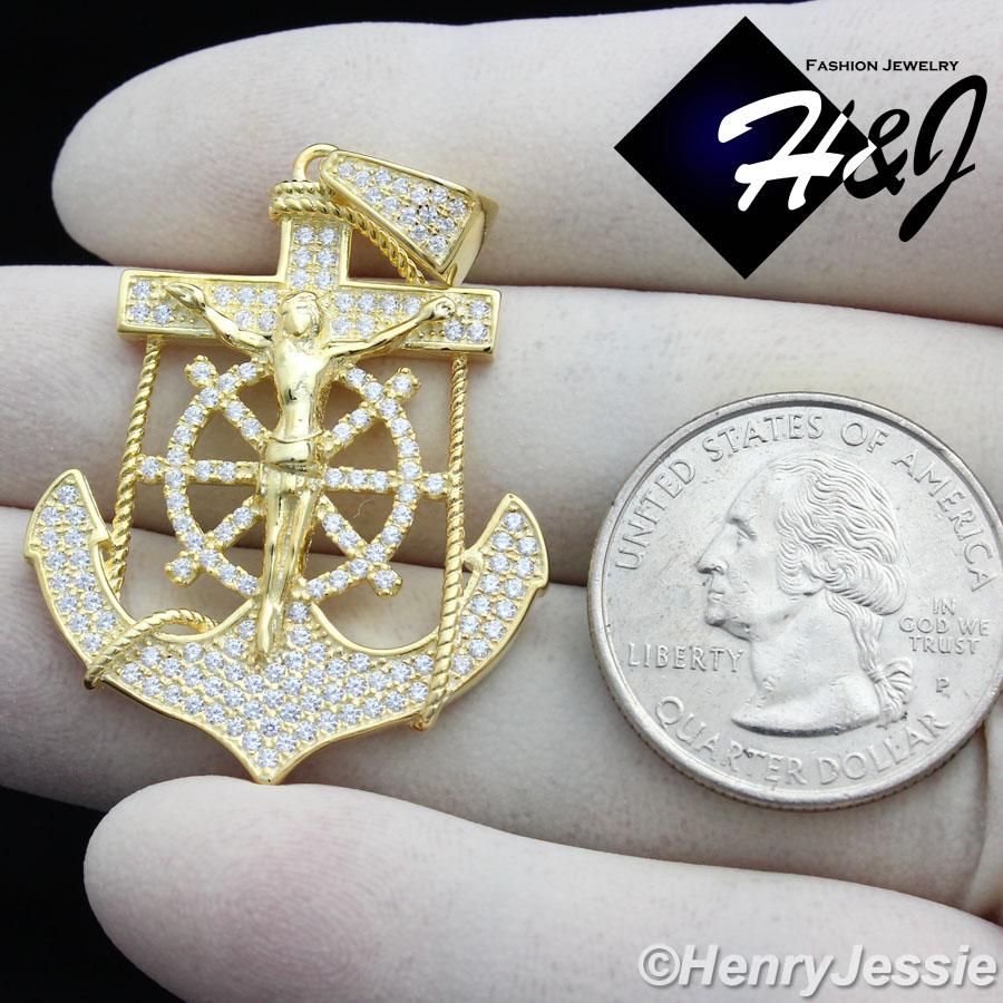 > Sterling Silver > Men > Pendants > MEN 925 STERLING SILVER ICED BLING ANCHOR JESUS CROSS GOLD PENDANT*SP89