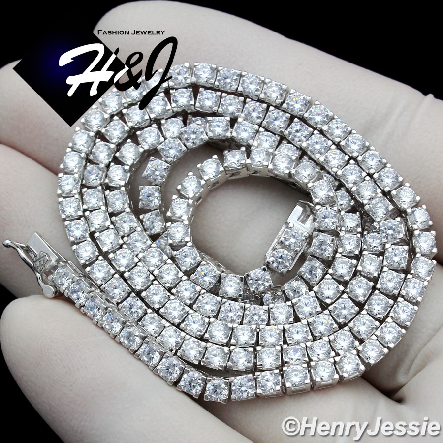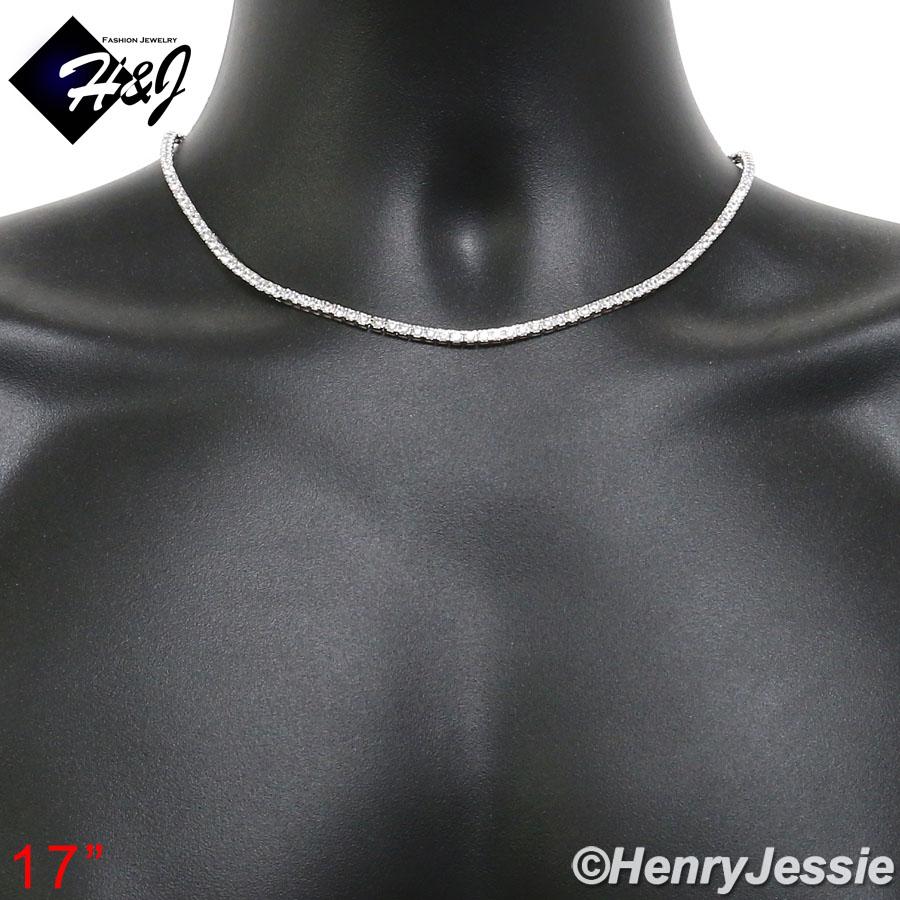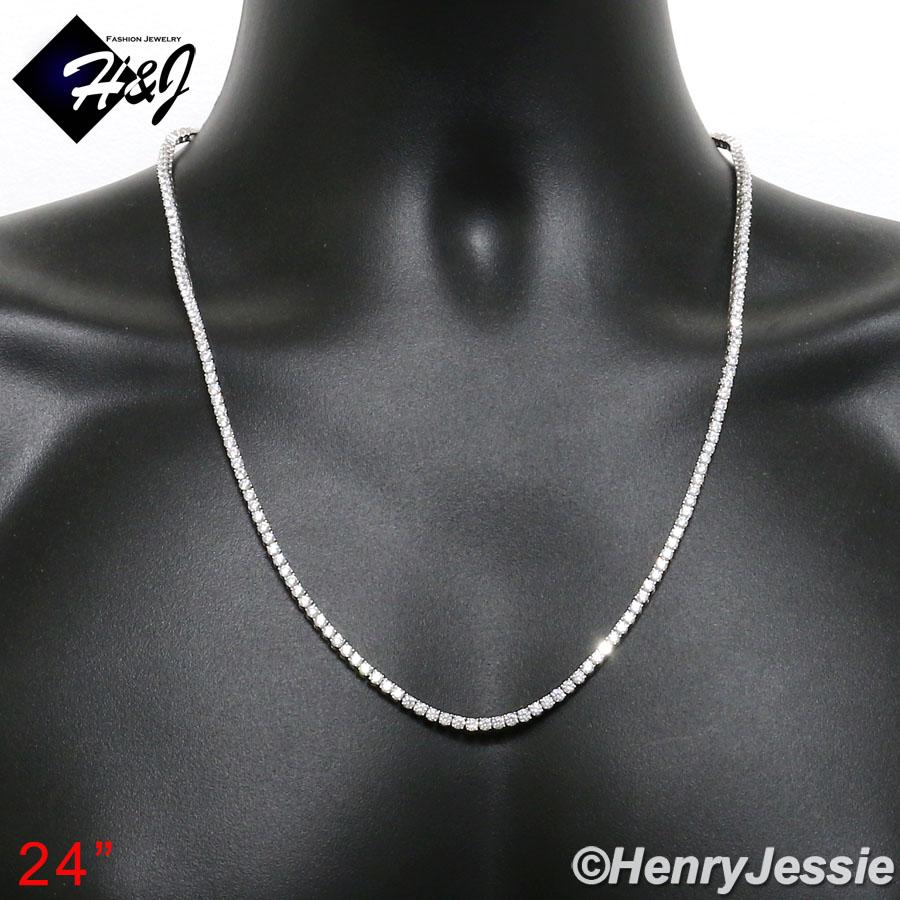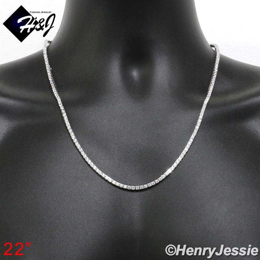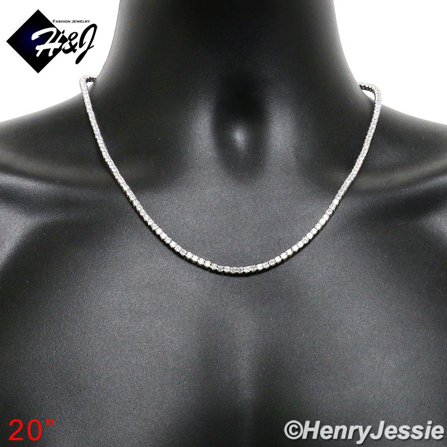 > Sterling Silver > Men > Necklaces > 18-28"MEN WOMEN 925 STERLING SILVER 3MM ICED BLING 1 ROW TENNIS CHAIN NECKLACE*SN10