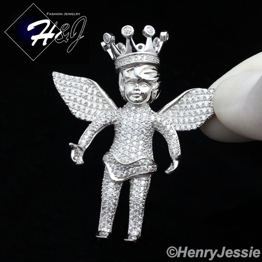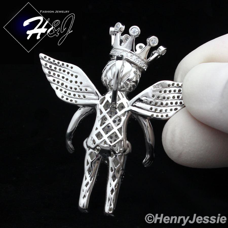 > Sterling Silver > Men > Pendants > MEN 925 STERLING SILVER LAB DIAMOND ICED BLING ANGEL WING CROWN PENDANT*SP121