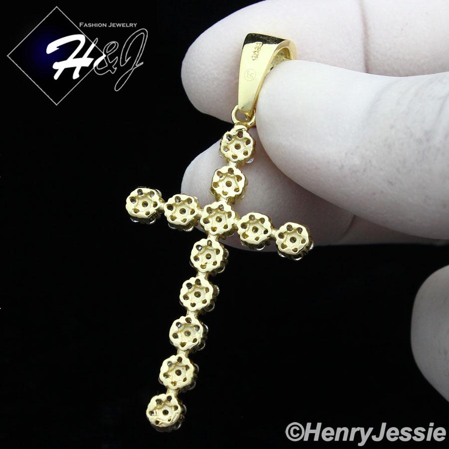 > Sterling Silver > Men > Pendants > MEN 925 STERLING SILVER ICED BLING ROUND CZ CROSS GOLD CHARM PENDANT*GP128