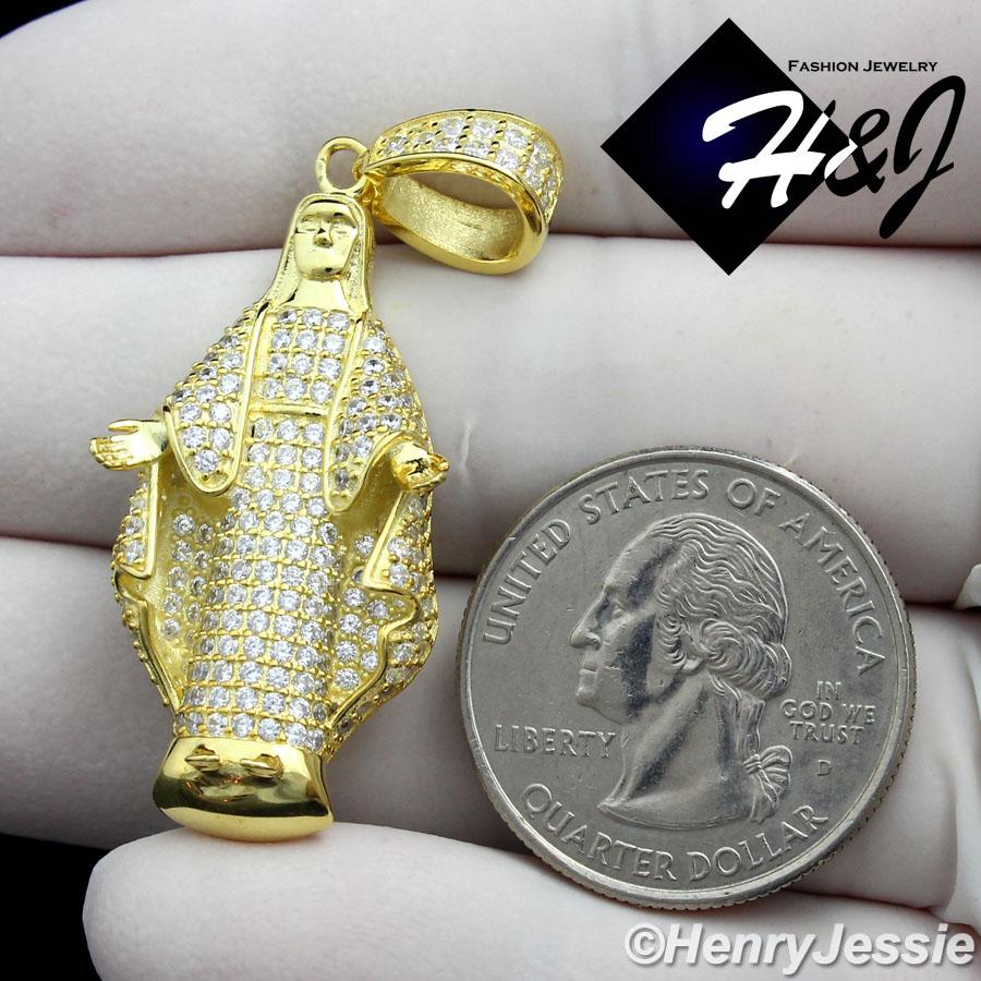 > Sterling Silver > Men > Pendants > 925 STERLING SILVER ICED VIRGIN MARY MOTHER OF JESUS GOLD PENDANT*GP129