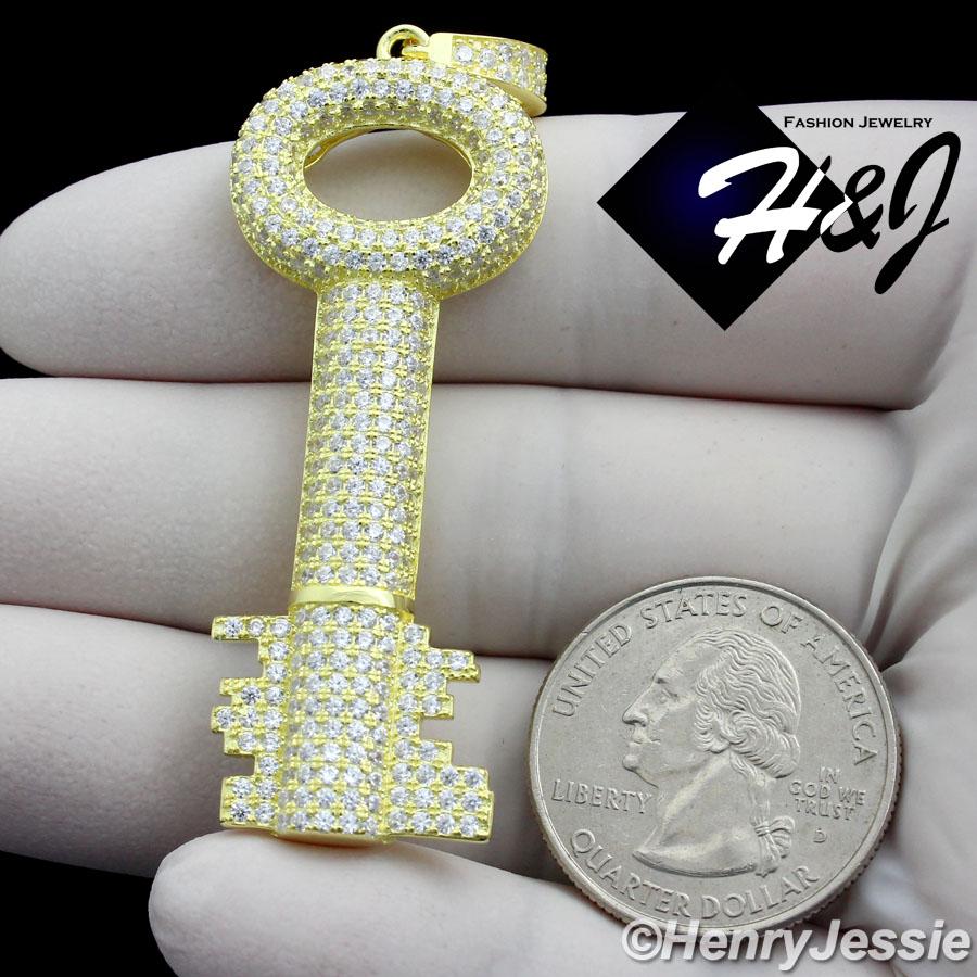 > Sterling Silver > Men > Pendants > MEN 925 STERLING SILVER LAB DIAMOND ICED BLING GOLD KEY STYLE PENDANT*GP136