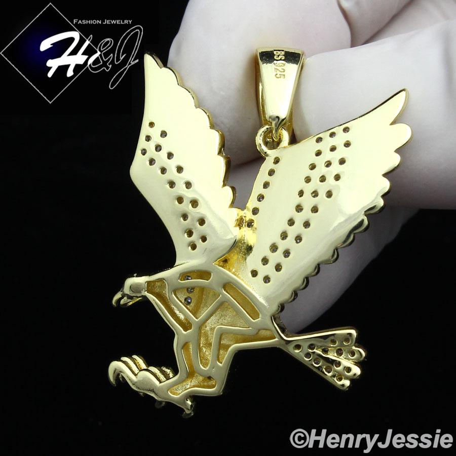 > Sterling Silver > Men > Pendants > MEN 925 STERLING SILVER LAB DIAMOND ICED BLING 3D EAGLE GOLD PENDANT*GP149