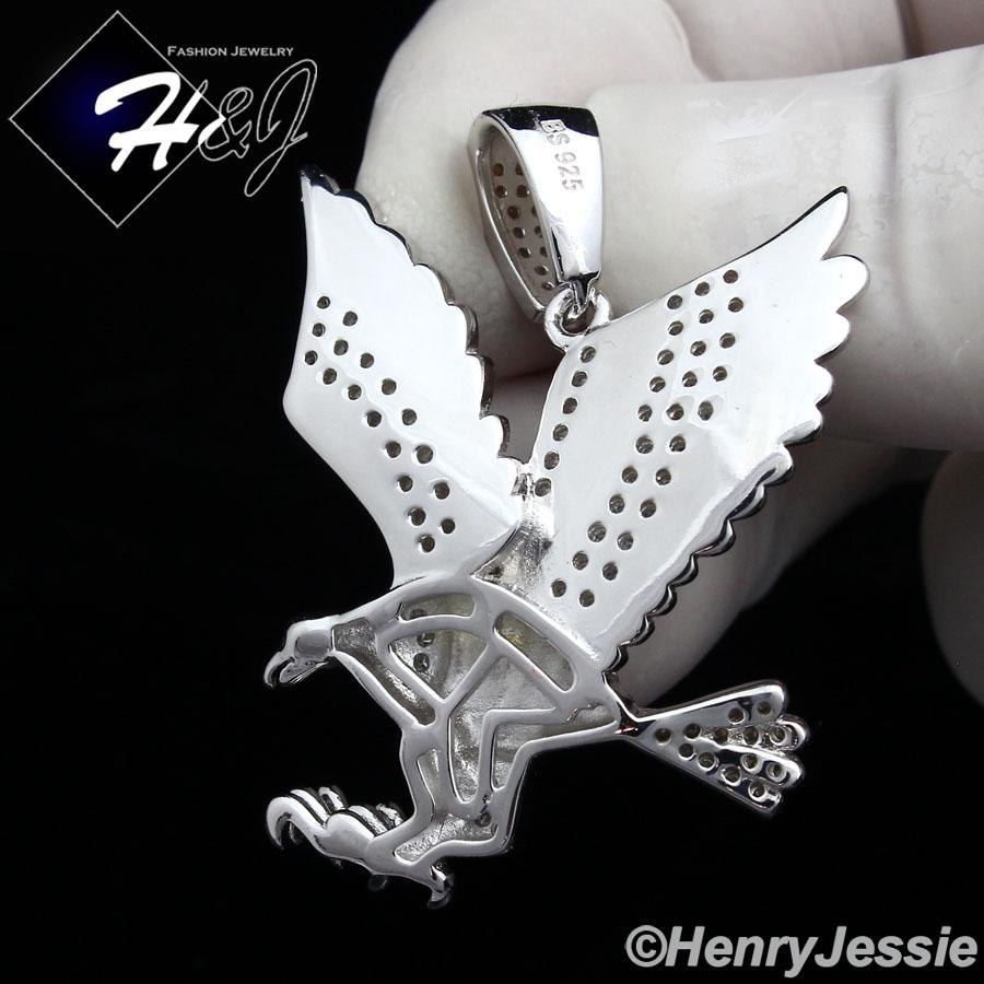 > Sterling Silver > Men > Pendants > MEN 925 STERLING SILVER LAB DIAMOND ICED BLING 3D EAGLE CHARM PENDANT*SP149