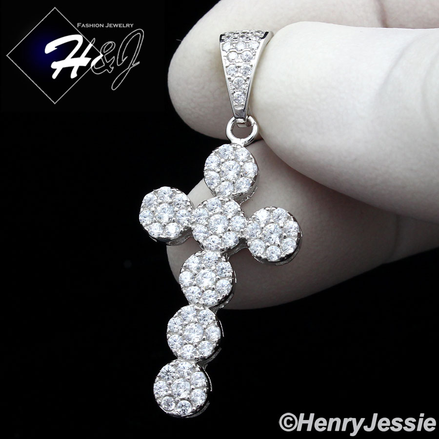 > Sterling Silver > Men > Pendants > MEN WOMEN 925 STERLING SILVER LAB DIAMOND ICED BLING CROSS CHARM PENDANT*SP160