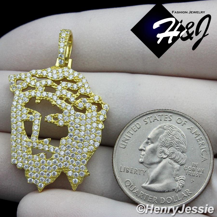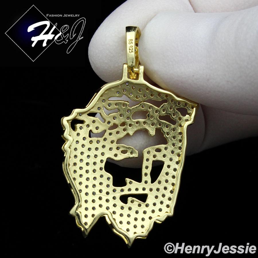 > Sterling Silver > Men > Pendants > MEN 925 STERLING SILVER LAB DIAMOND ICED BLING GOLD JESUS FACE PENDANT*GP163