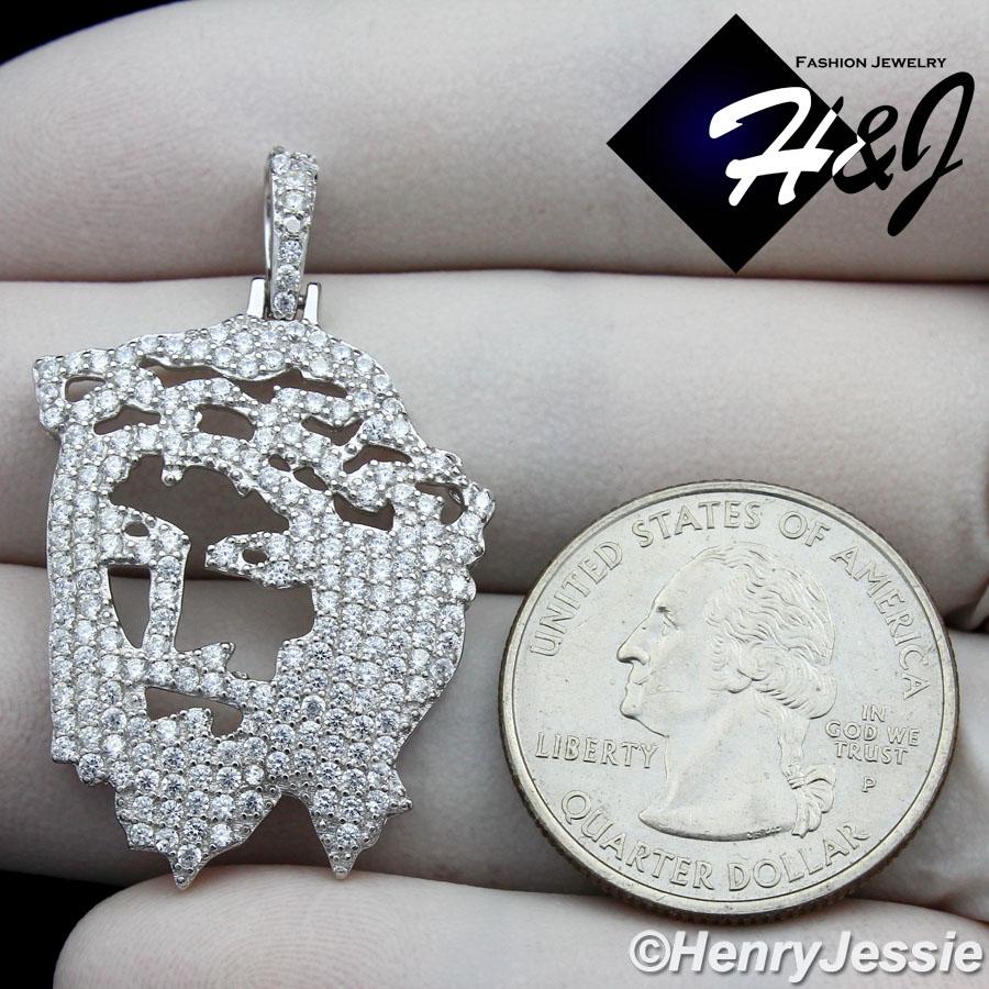 > Sterling Silver > Men > Pendants > MEN 925 STERLING SILVER LAB DIAMOND ICED BLING JESUS FACE CHARM PENDANT*P163