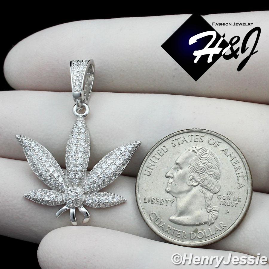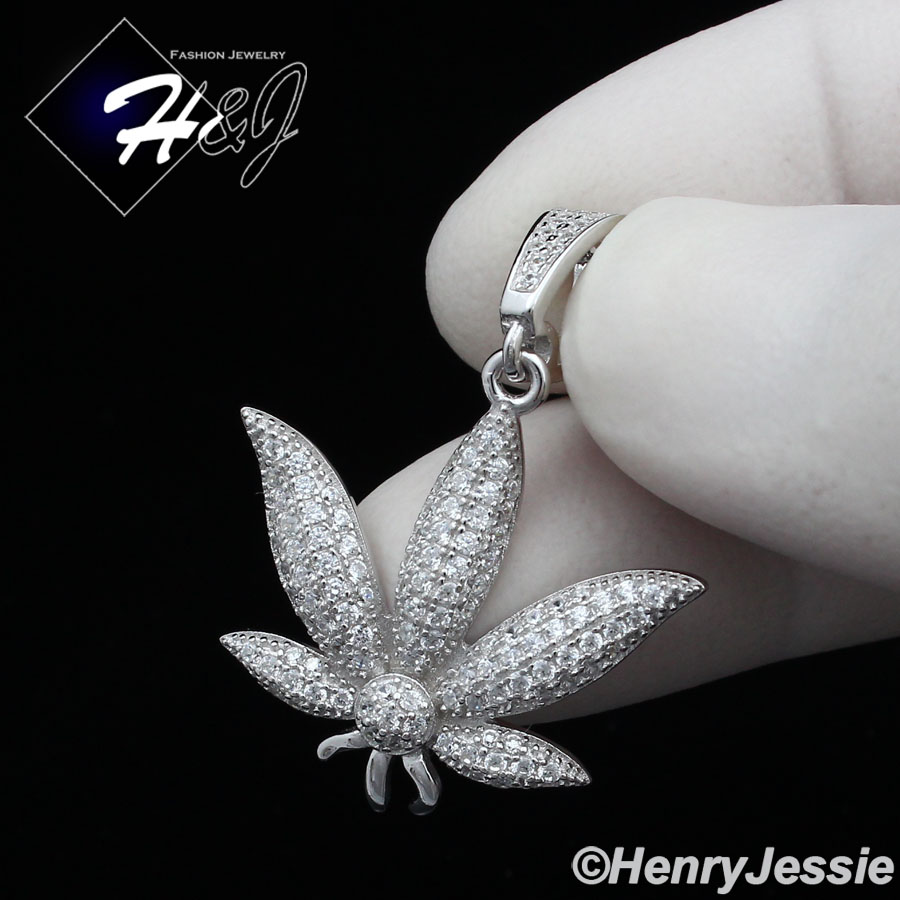 > Sterling Silver > Men > Pendants > MEN WOMEN 925 STERLING SILVER LAB DIAMOND ICED BLING MARIJUANA LEAF PENDANT*P173