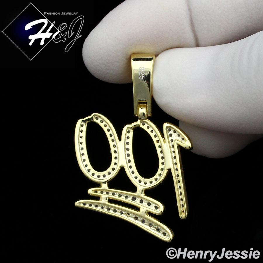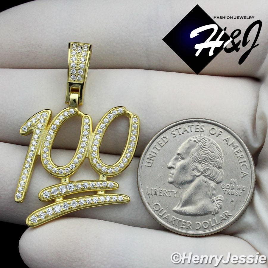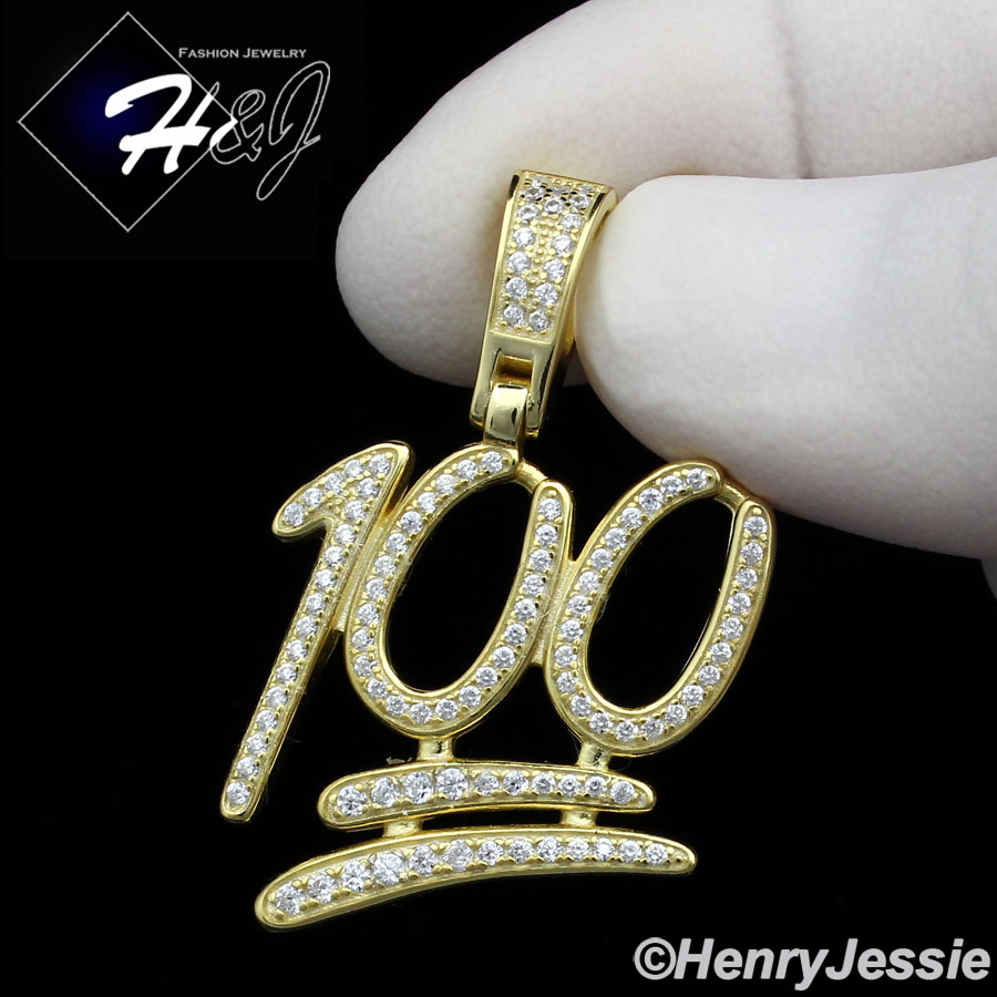 > Sterling Silver > Men > Pendants > MEN 925 STERLING SILVER LAB DIAMOND ICED BLING 100 EMOJI LOGO GOLD PENDANT*GP176