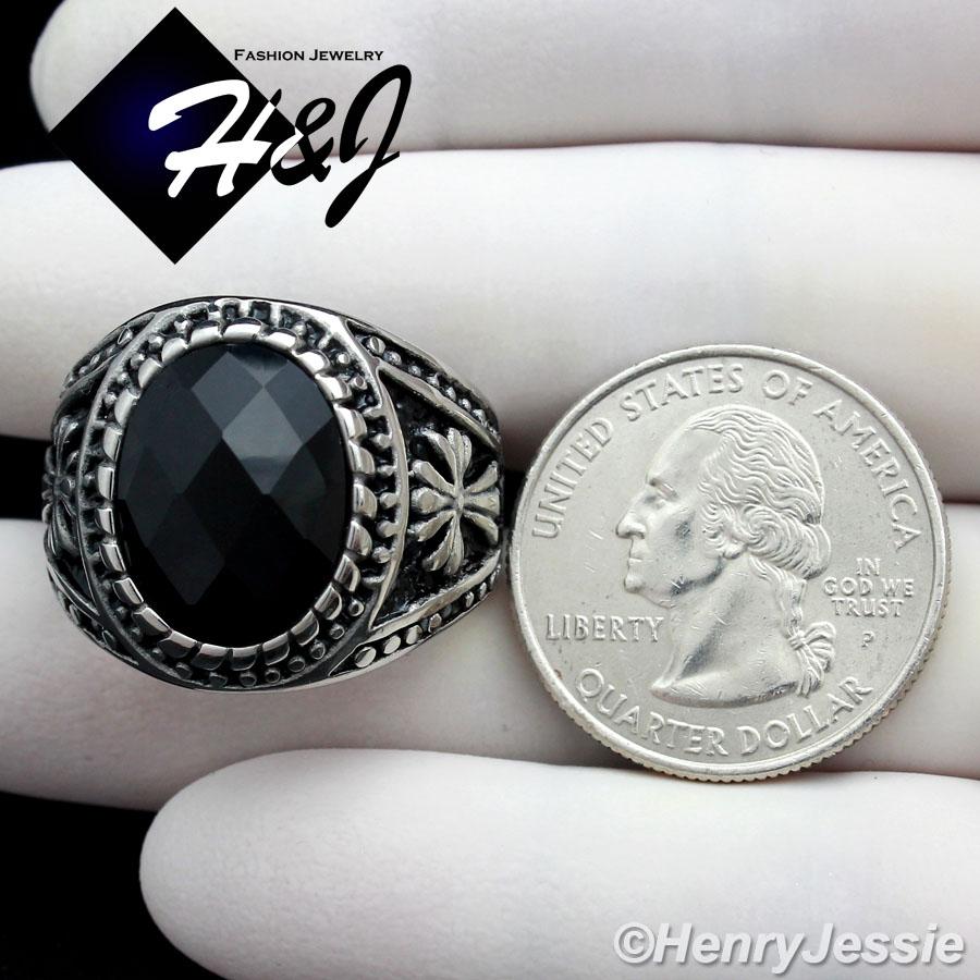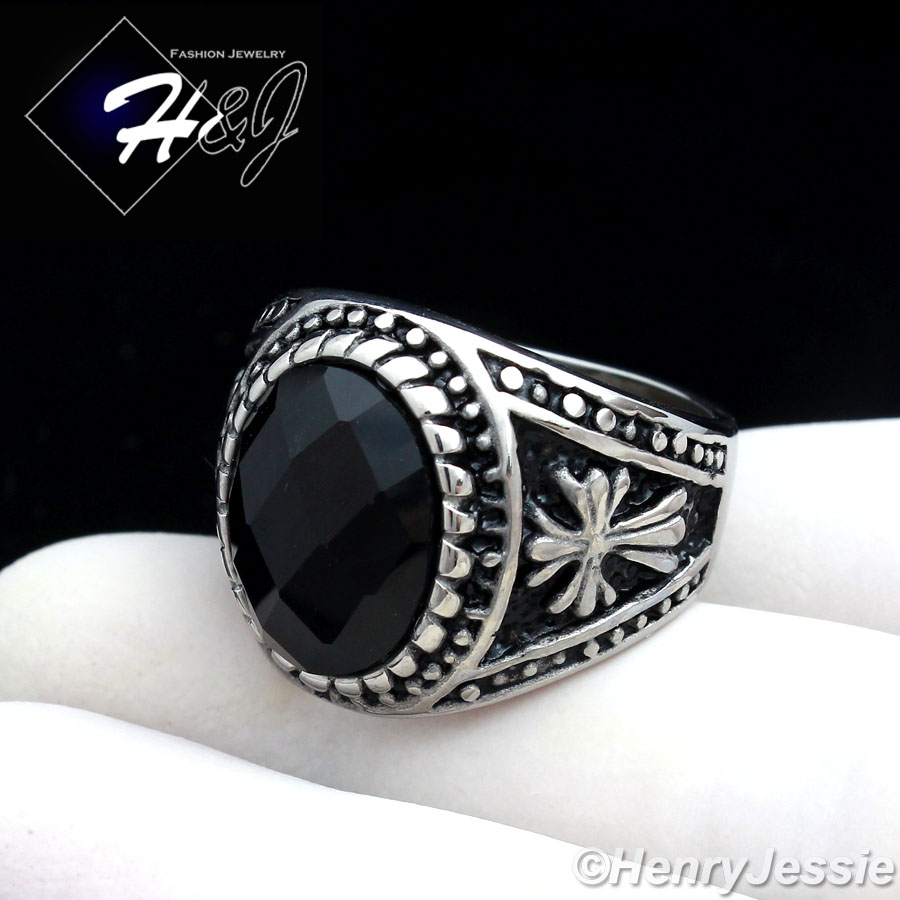 > Stainless Steel > Men > Rings > MEN's Stainless Steel Silver Black Oval Onyx Vintage Ring Size 8-13*R88