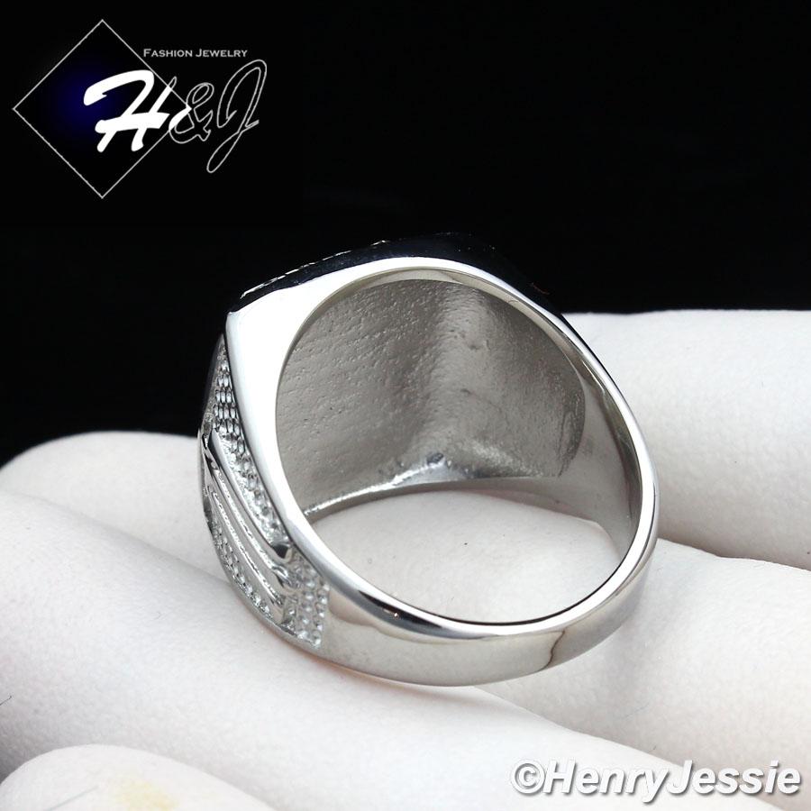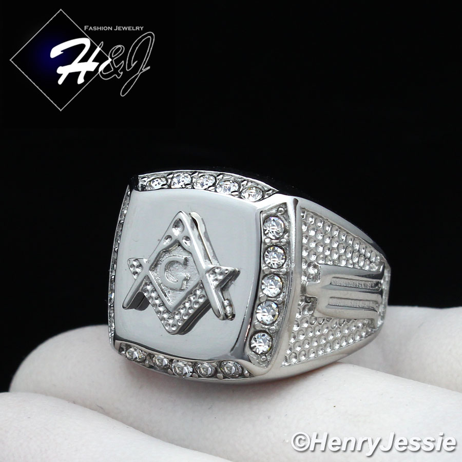 > Stainless Steel > Men > Rings > MEN's Stainless Steel Silver CZ MASONIC Square Ring Size 8-13*R107