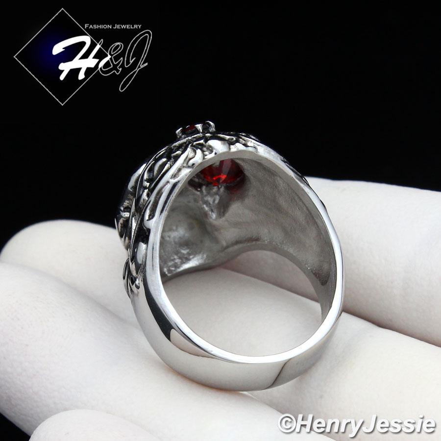 > Stainless Steel > Men > Rings > BIKER MEN Stainless Steel Red Eye/Silver Black Skull Face Ring Size 7-12*R108