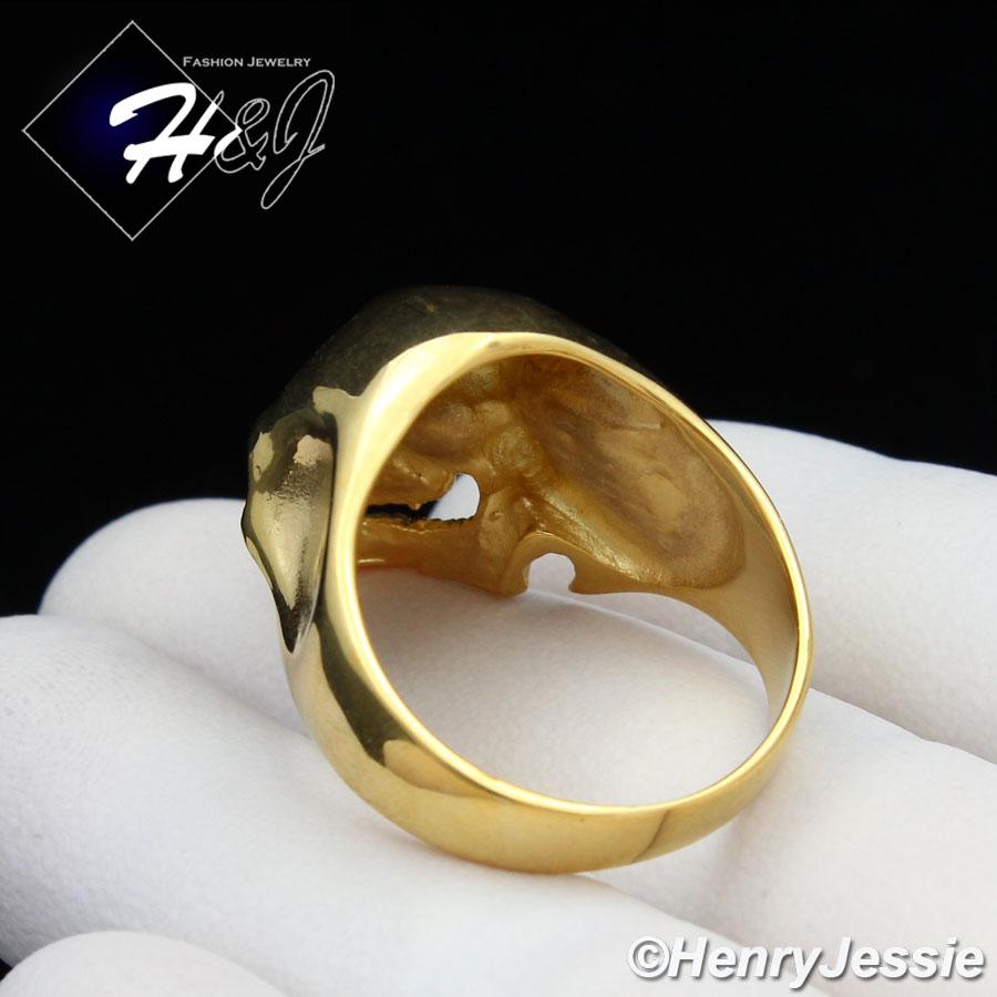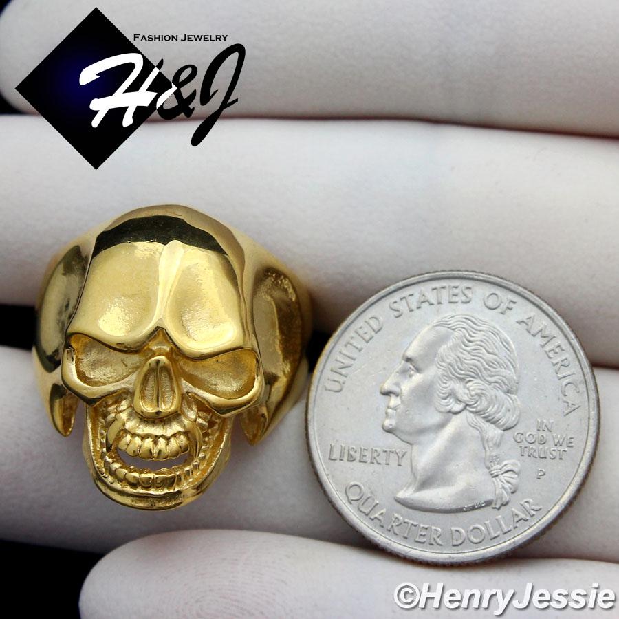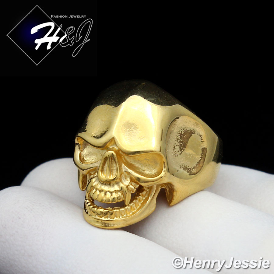 > Stainless Steel > Men > Rings > BIKER MEN's Stainless Steel Gold Skull Face Head Ring Size 7-12*GR109