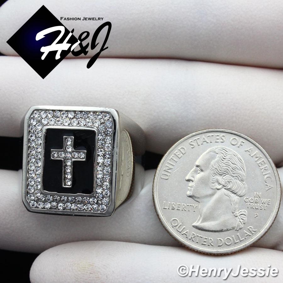 > Stainless Steel > Men > Rings > MEN Stainless Steel Black/Silver Cross ICED BLING CZ Square Ring Size 8-13*R106