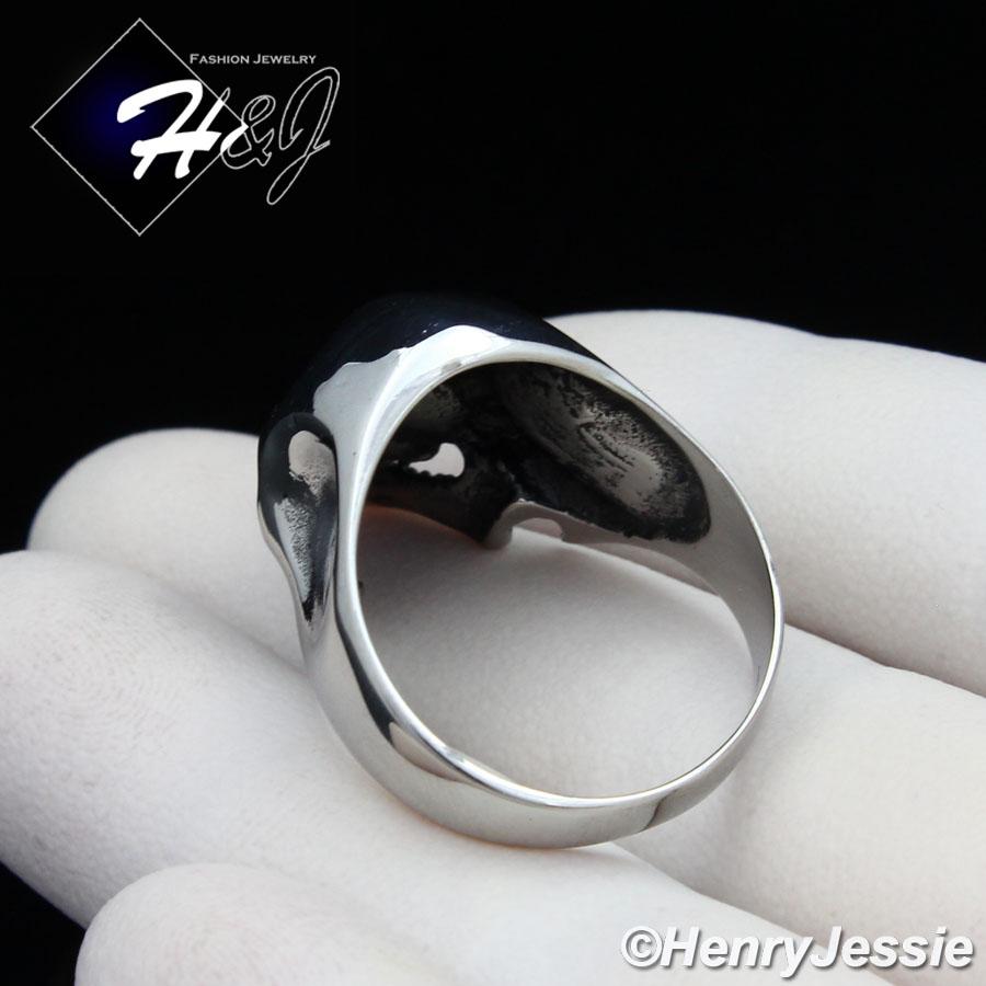 > Stainless Steel > Men > Rings > BIKER MEN's Stainless Steel Silver Black Skull Face Head Ring Size 7-12*R109