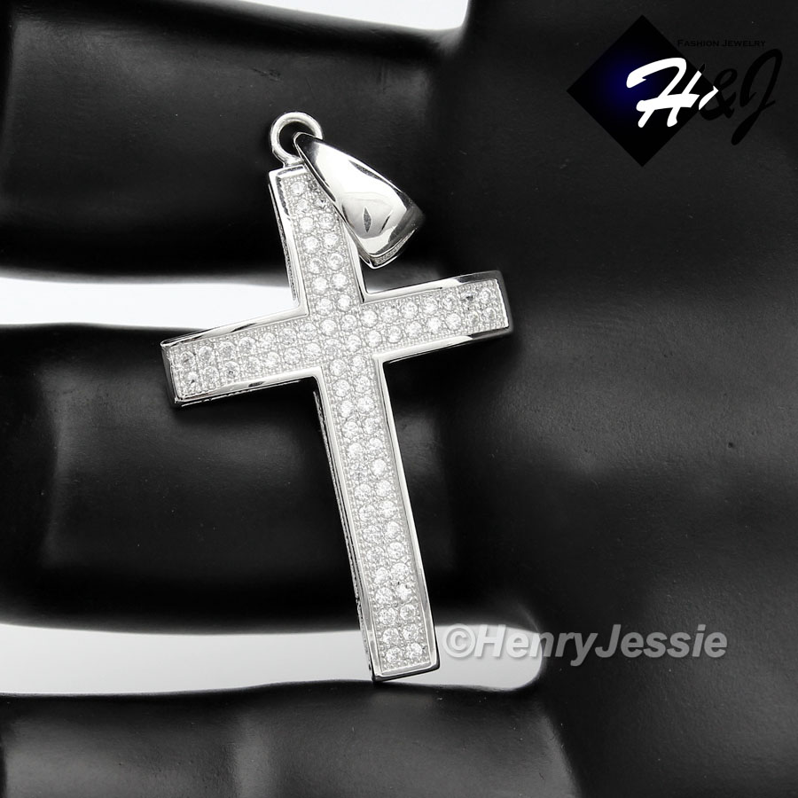 > Sterling Silver > Men > Pendants > MEN WOMEN 925 STERLING SILVER LAB DIAMOND ICED BLING 3D CROSS PENDANT*SP5