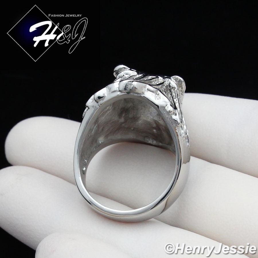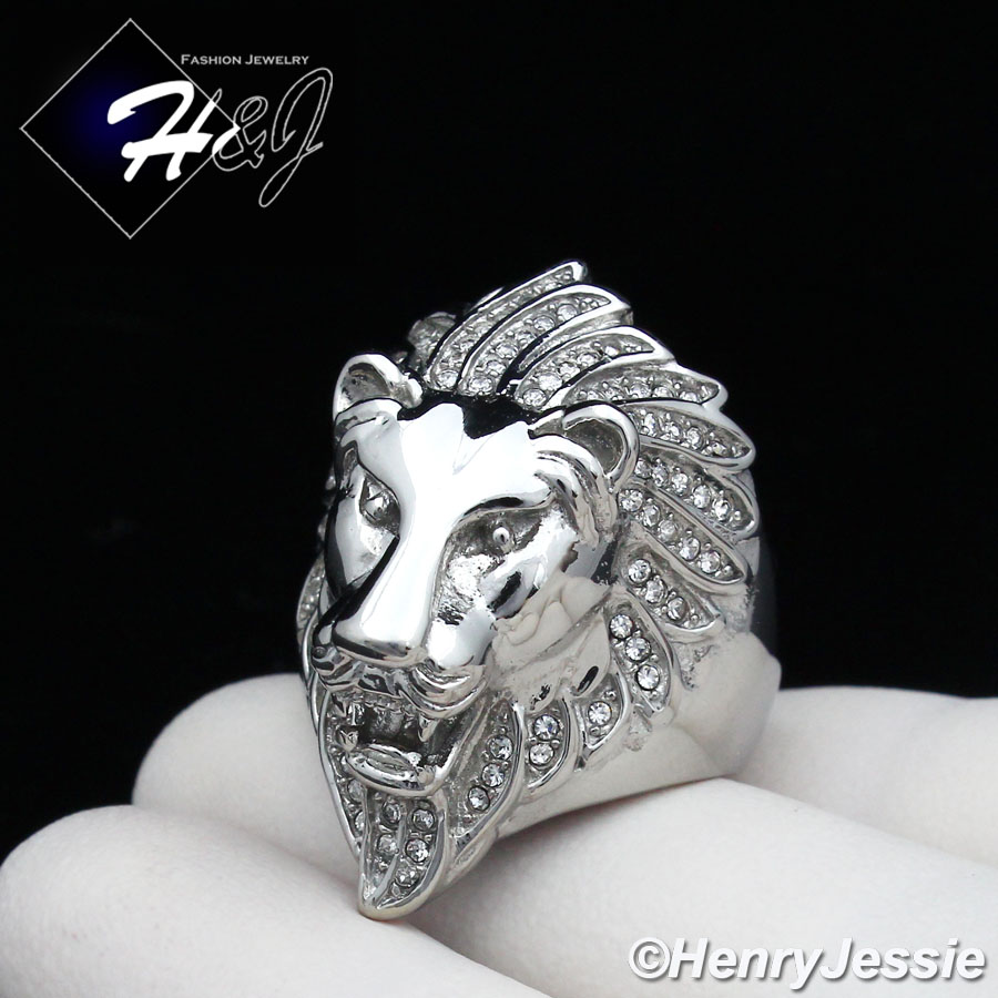 > Stainless Steel > Men > Rings > MEN's Stainless Steel ICED CZ Silver Lion King Face Ring Size 8-13*R111