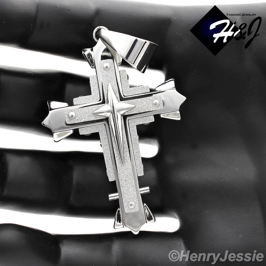 > Stainless Steel > Men > Pendants > MEN Stainless Steel Silver Matte Glitter Finished Cross Charm Pendant*S51