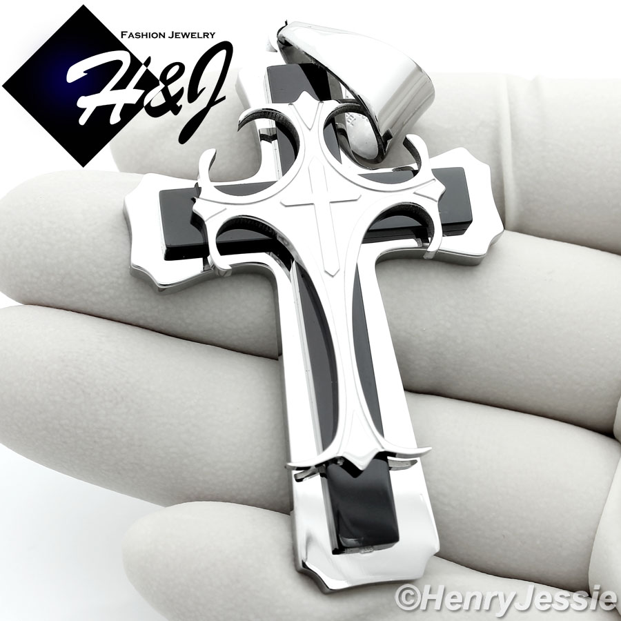 > Stainless Steel > Men > Pendants > MEN's Stainless Steel 2.2"x1.5" Black Silver Cross Charm Pendant*H63