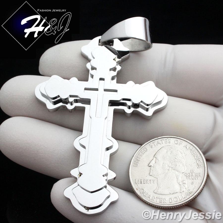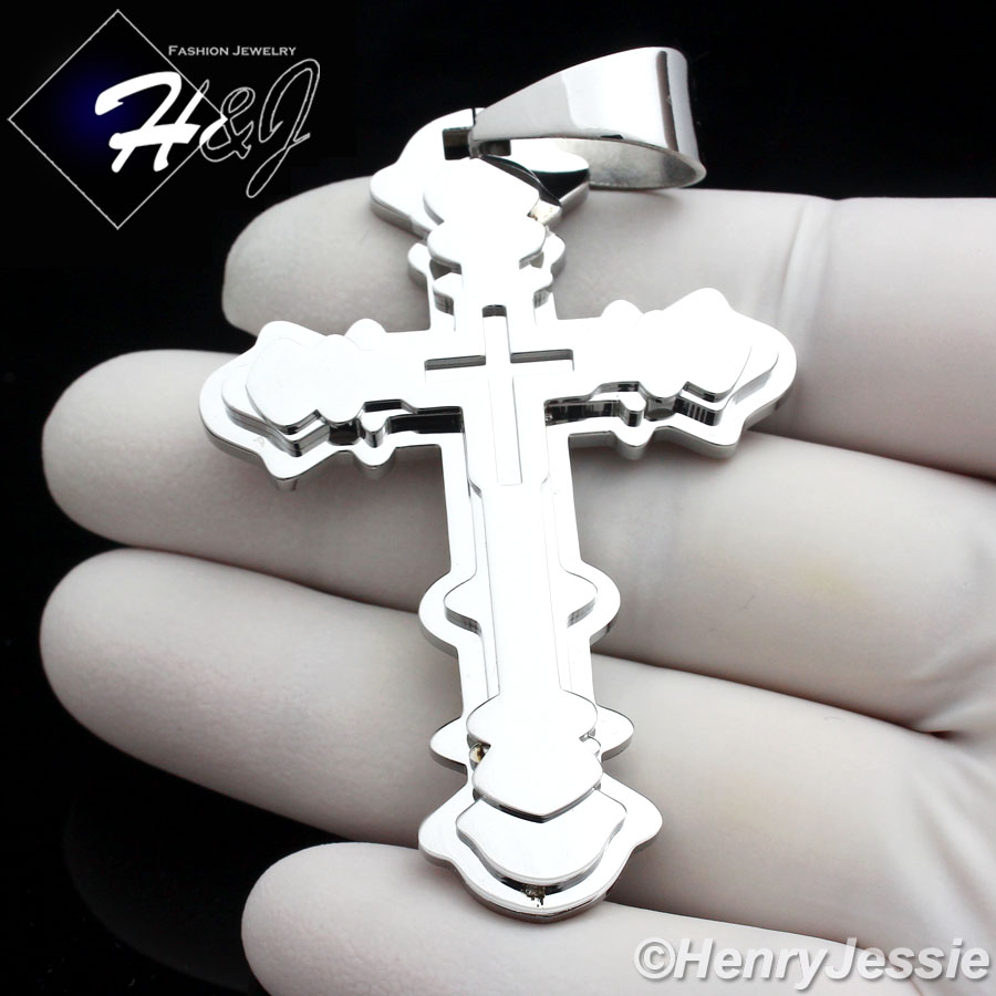> Stainless Steel > Men > Pendants > MEN Stainless Steel Silver Layover Double Cross Charm Pendant*P72