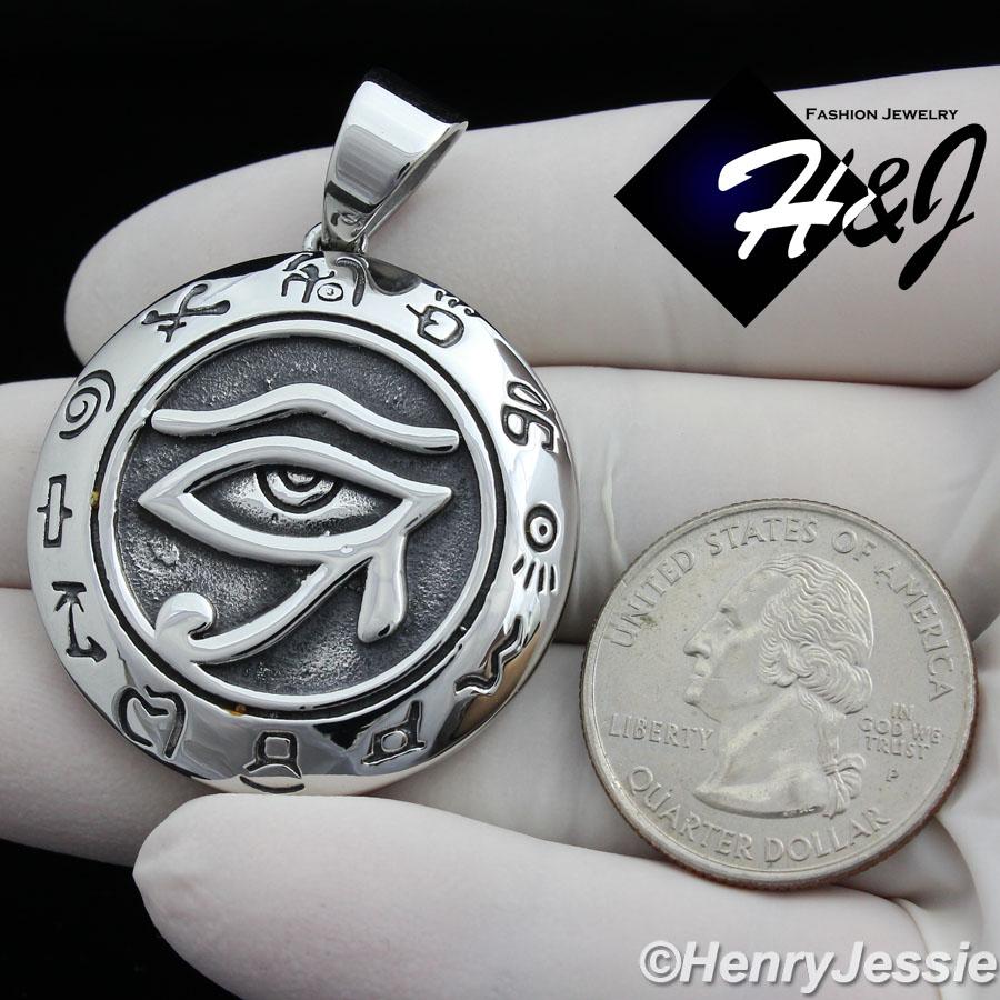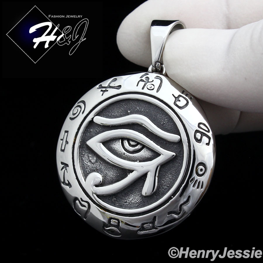 > Stainless Steel > Men > Pendants > MEN's Stainless Steel HEAVY Silver/Black Egyptian Eye of Horus Round Pendant*P92