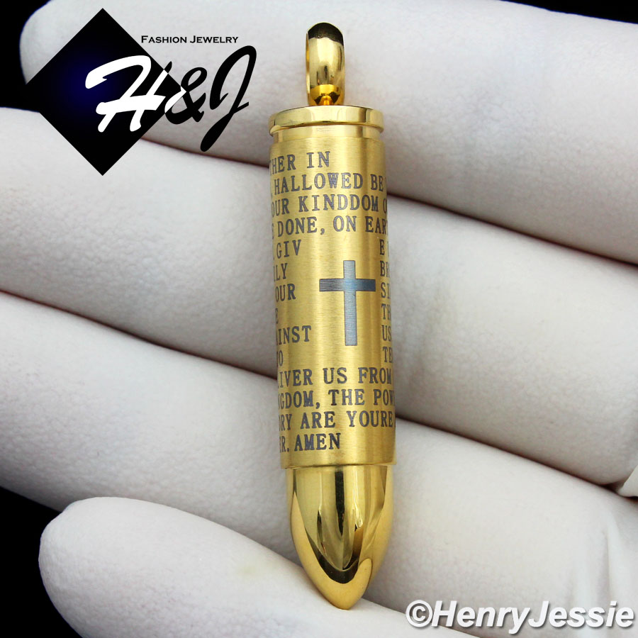 > Stainless Steel > Men > Pendants > MEN's Stainless Steel Cross Bible Verse Gold Bullet Charm Pendant*GP99