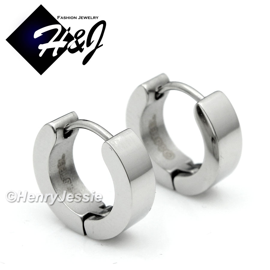 > Stainless Steel > Men > Earrings > 0.5"Men's Women's Stainless Steel Silver Plain Simple Huggie Cuff Earrings*E7