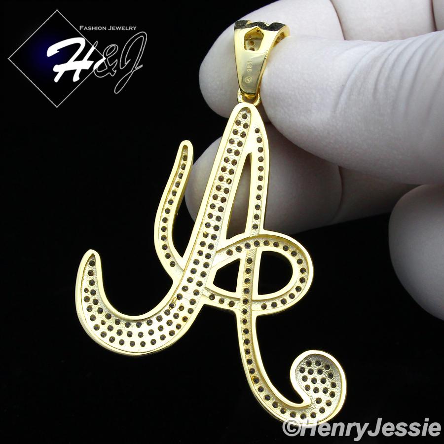 > Sterling Silver > Men > Pendants > MEN 925 STERLING SILVER LAB DIAMOND ICED BLING GOLD INITIAL LETTER "A" CHARM PENDANT*GP141