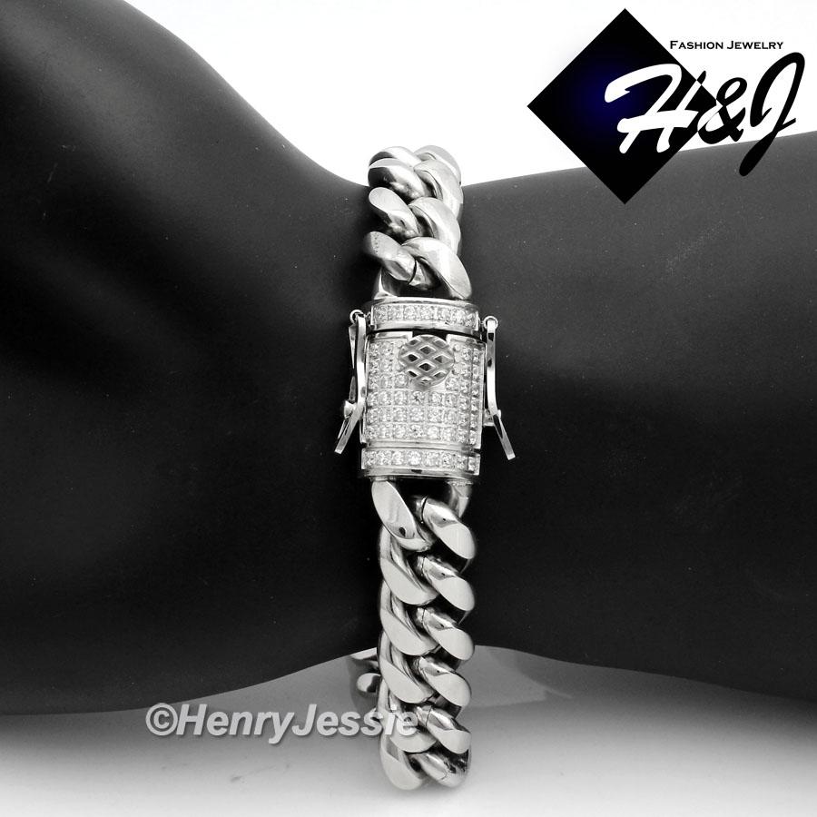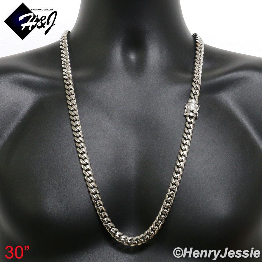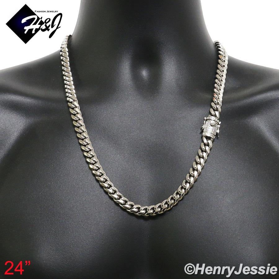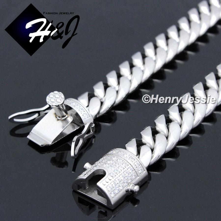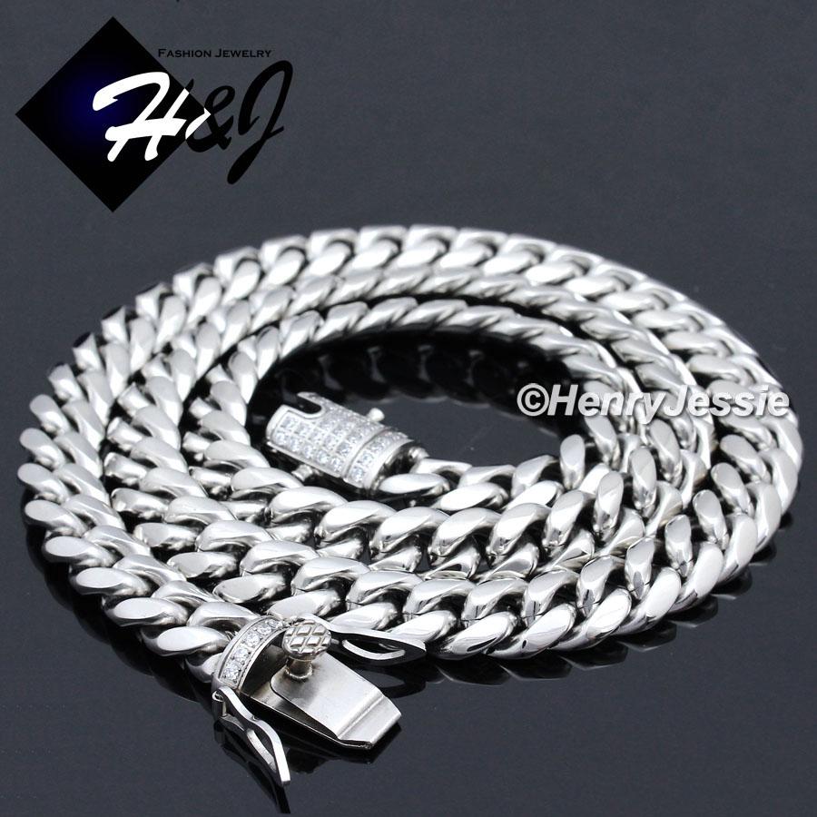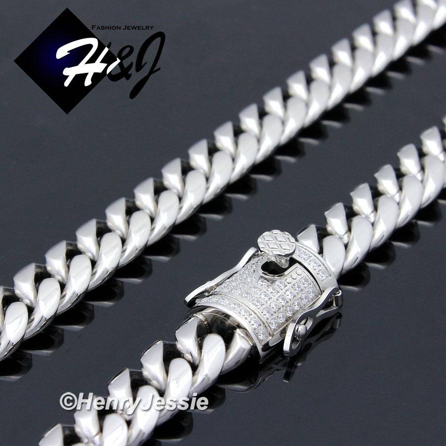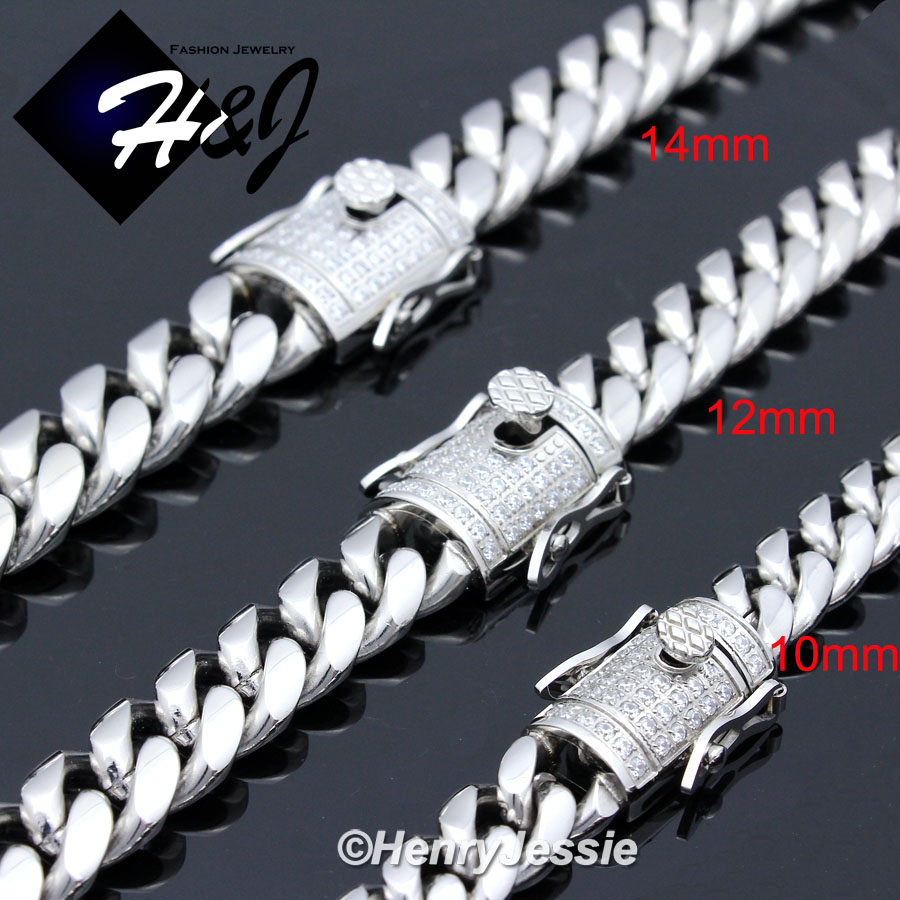 > Stainless Steel > Men > Necklaces > 7.5"-40"MEN Stainless Steel 10mm/12mm/14mm Silver Diamond Miami Cuban Curb Chain Bracelet Necklace*N158